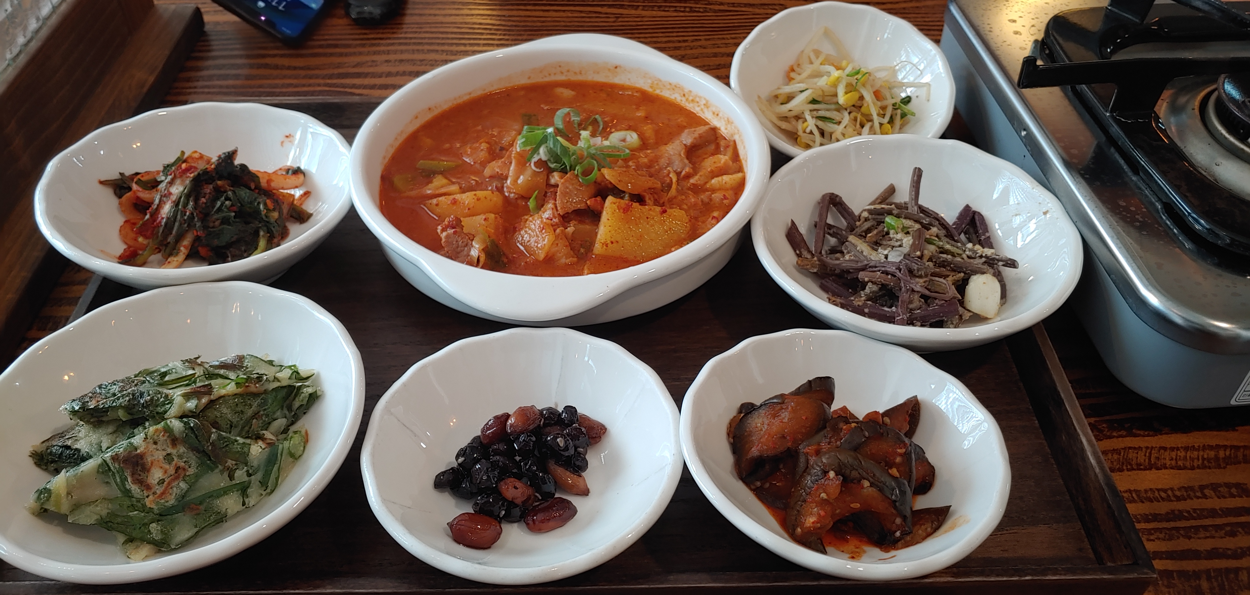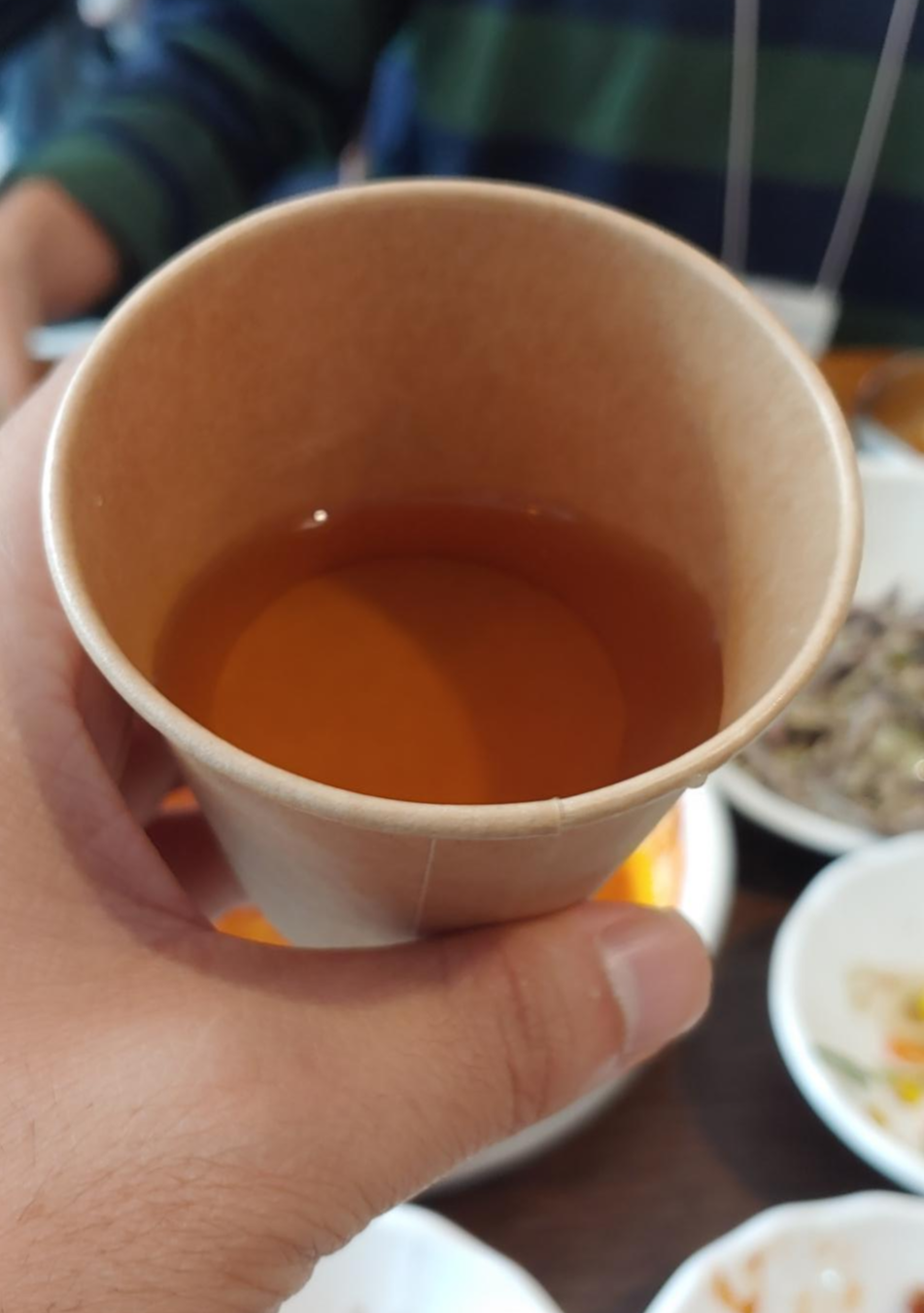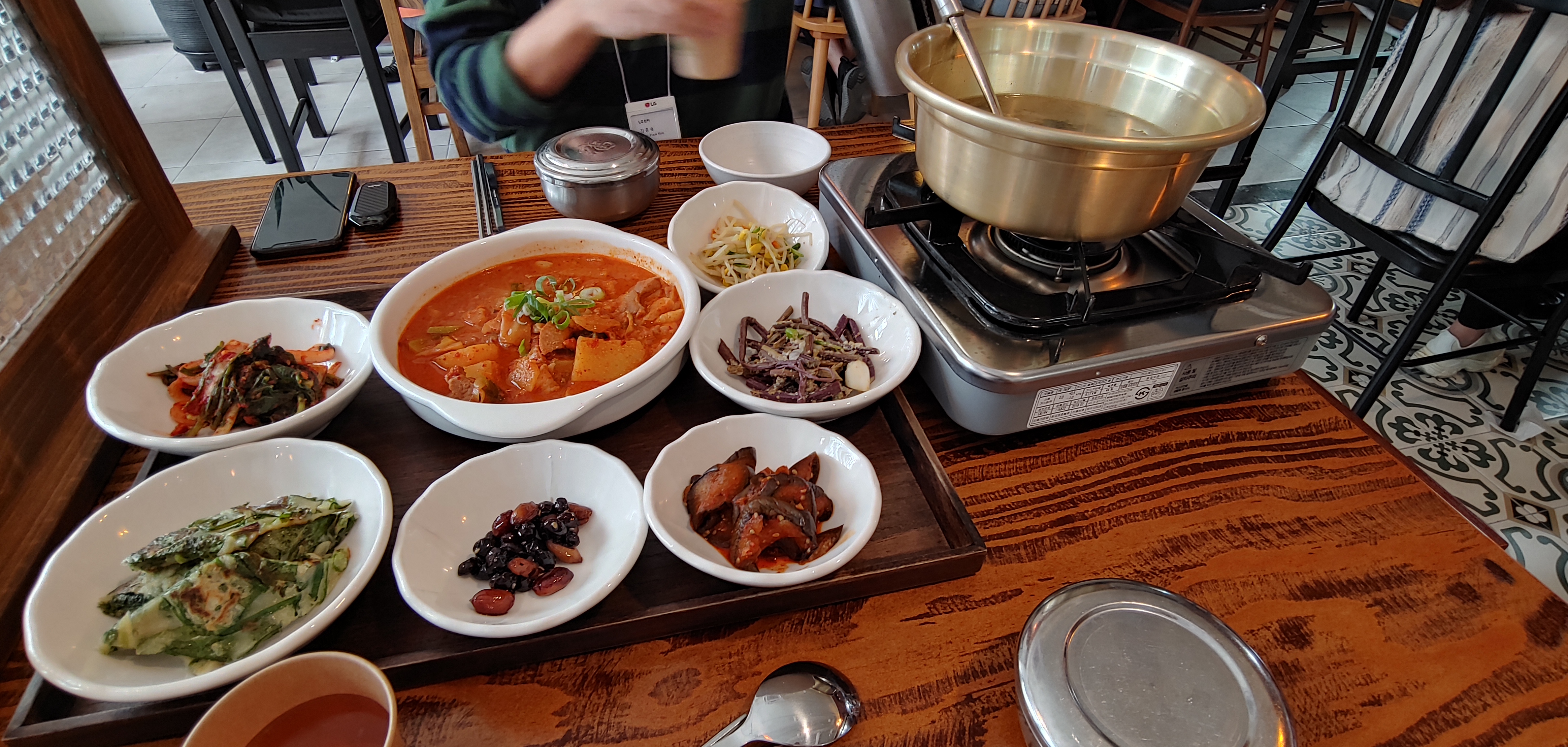여러가지 반찬과 함께 어찌보면고추장 찌개 같고 어찌보면 제육같은 메뉴가 나왔다. 집에서 먹는 느낌이 나긴 하는데 LG쪽 사람들이 사내 식당을 두고 여기에 오면 많이 아쉬워 할 것 같다.