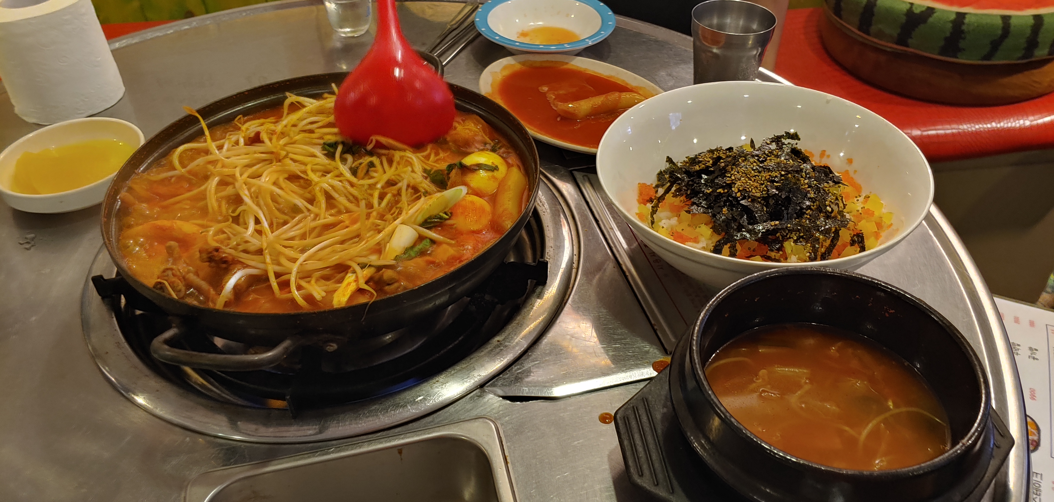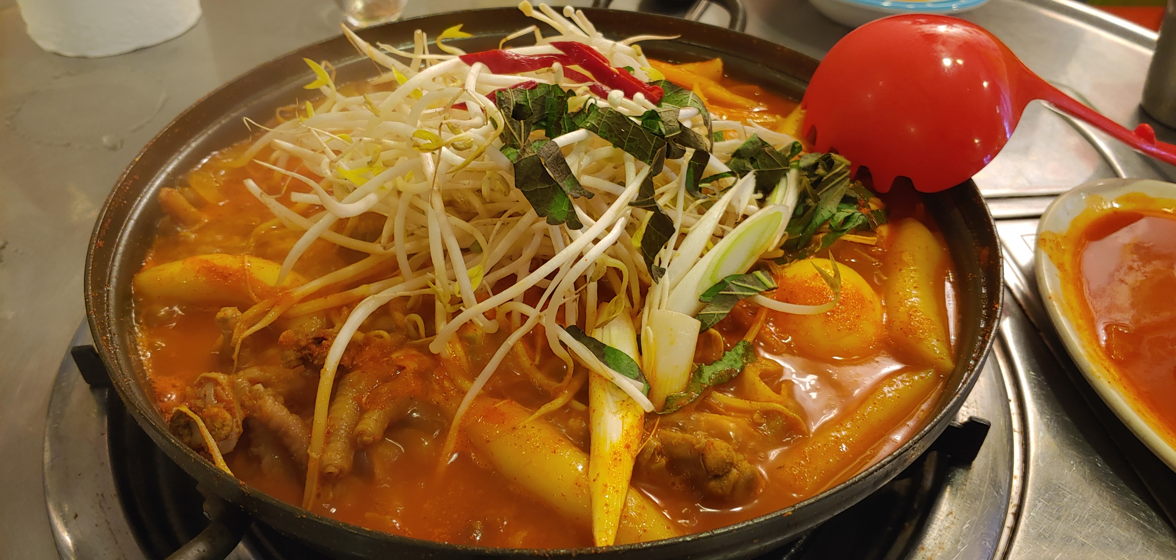 떡볶이를 먹으러 와서 닭발을 시켰는데, 기본 서비스 안주로 떡볶이가 나왔다. 어릴 적 학교앞에서 먹어본 듯한 느낌의 맛이 났다. 맛있었다. 1석 2조.