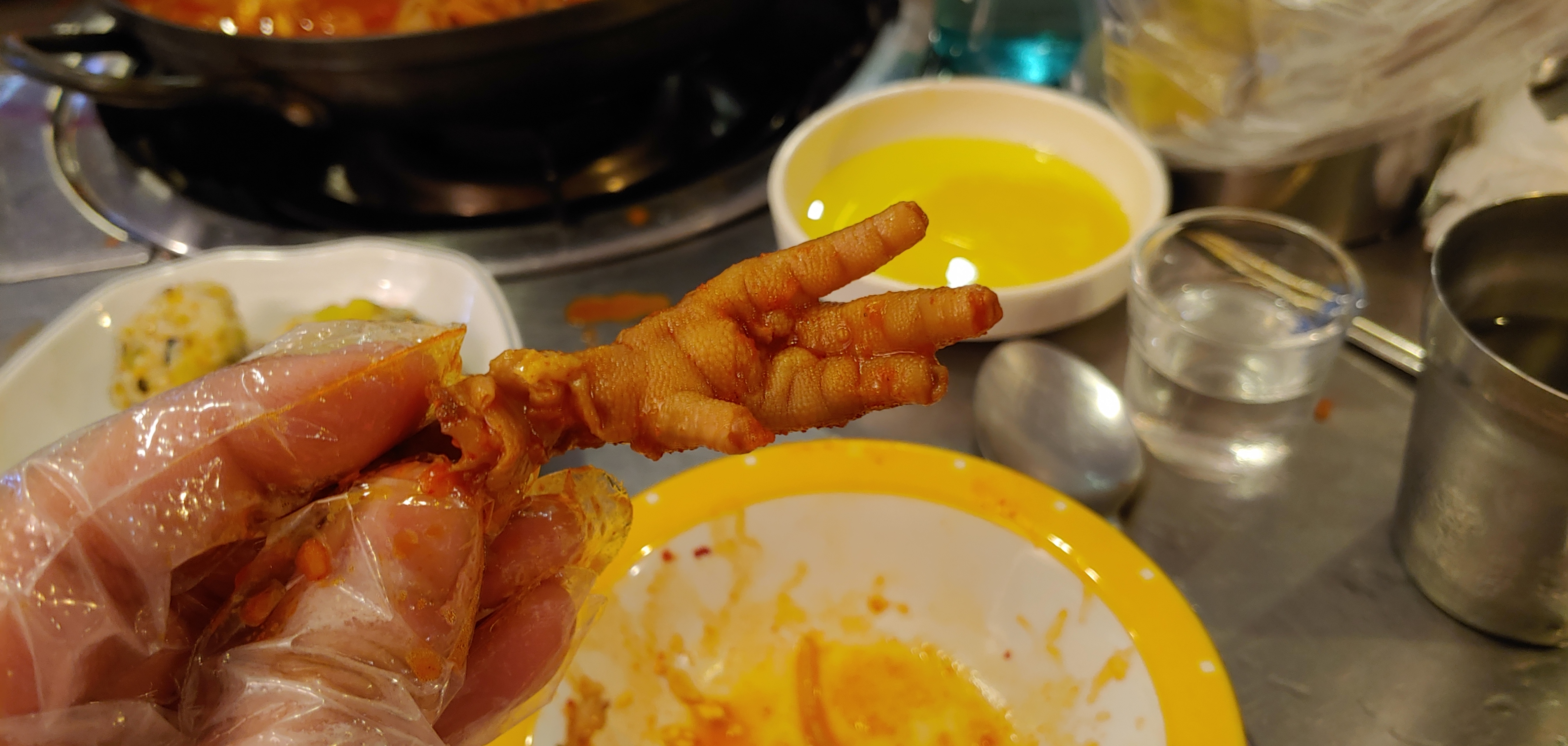 이 가게에 있을 때부터 땀이 났었는데, 이 블로그를 작성하려고 하는 이 시점에도 사진을 보니 땀이 나기 시작한다. 정말 닭발도 먹기 시작한지 얼마 안된 음식 중에 하나여서 그런지 이런 비주얼은 첨 본다. 그동안 시켜먹어서 그런가?