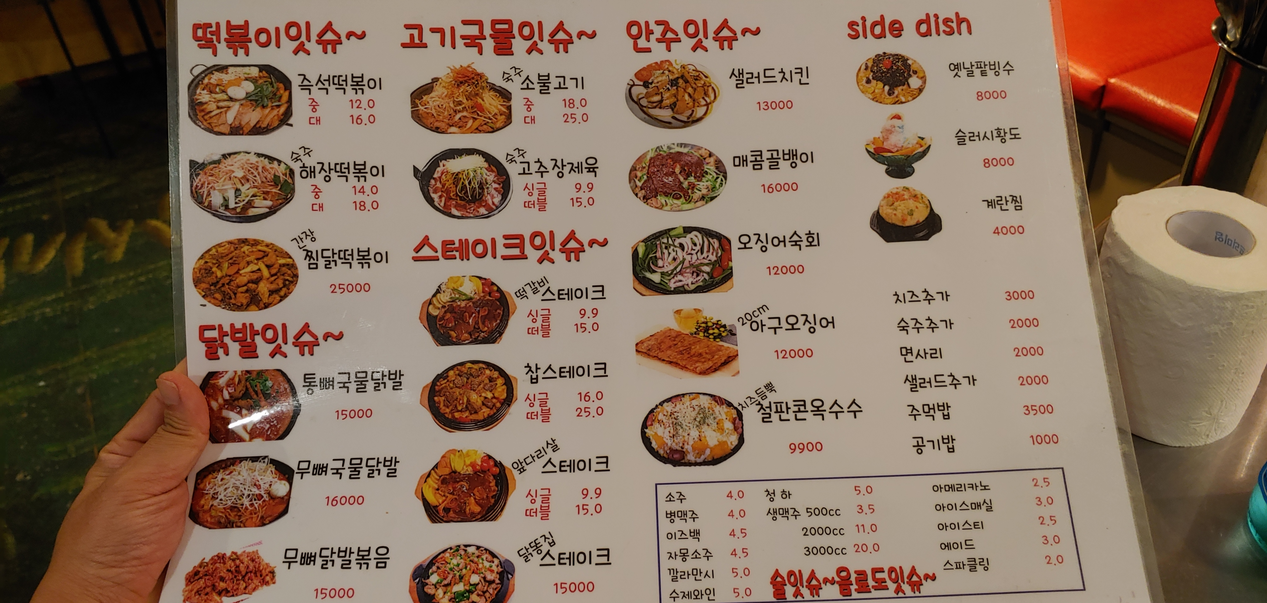 떡볶이를 먹으러 왔는데 막상 보니 간단한? 안주들이 많은 가게였다. 떡볶이가 아닌 닭발로 갈아탔다. 맵기는 보통으로.
