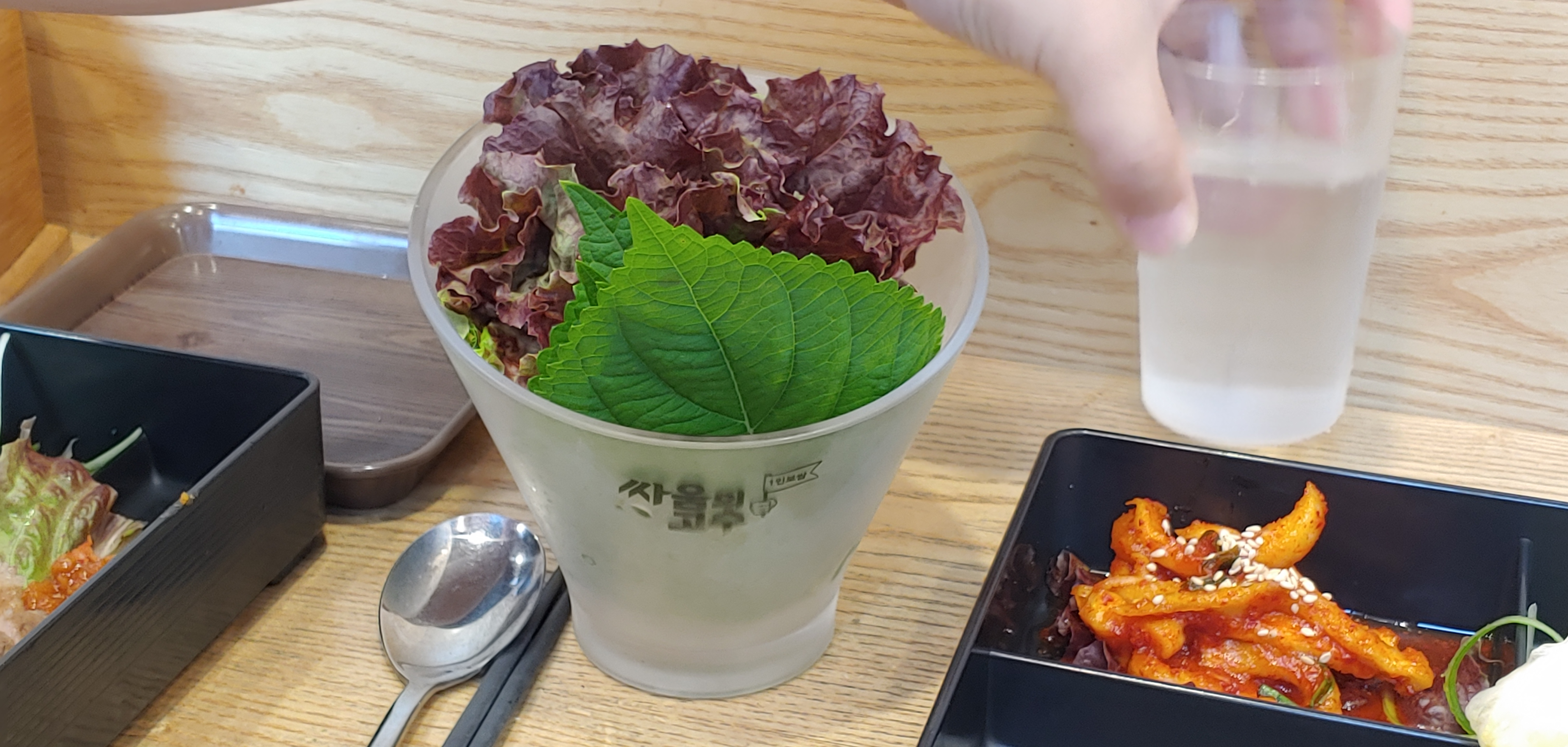 후배와 같은 것에 마늘 족발 같은 것 시키면 나오는 소스를 올려준다. 이 집의 타켓은 명확한 것 같다. 혼밥하기 어려운 메뉴인 삽겸살이나 보쌈을 1인이 먹기 좋게 해두었다. 그렇다고 해서 사람의 입맛이 바뀌지는 않는다. 먼가 아쉽다. 둘이 먹어서 나누면 9,000원정도꼴인데 이동네 가격을 생각하면 그냥 평범하지만, 또 먹자고 하면 집에서 보쌈을 시켜 먹을 것 같다. 각종 반찬도 추가를 해야하기에 또 시키기도 그렇고, 마늘도 없으니깐 느낌이 안산다.
