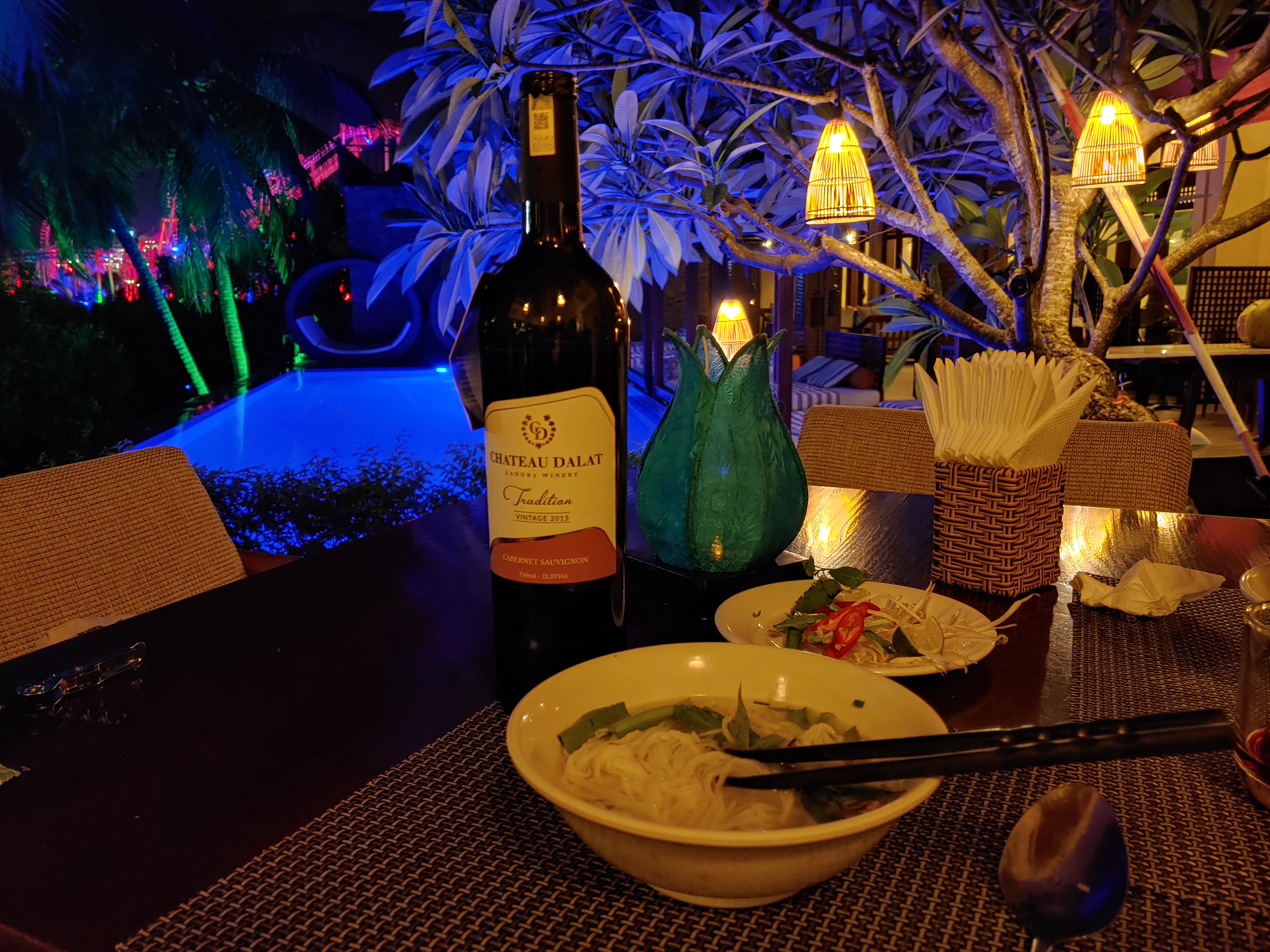 진짜 이 리조트 상줘야 한다. 저녁에 쌀국수 무제한으로 제공한다. 그래서 우리는 와인과 함께 쌀국수를 또 먹었다. 맛도 괜찮았다. 너무 좋아다~!