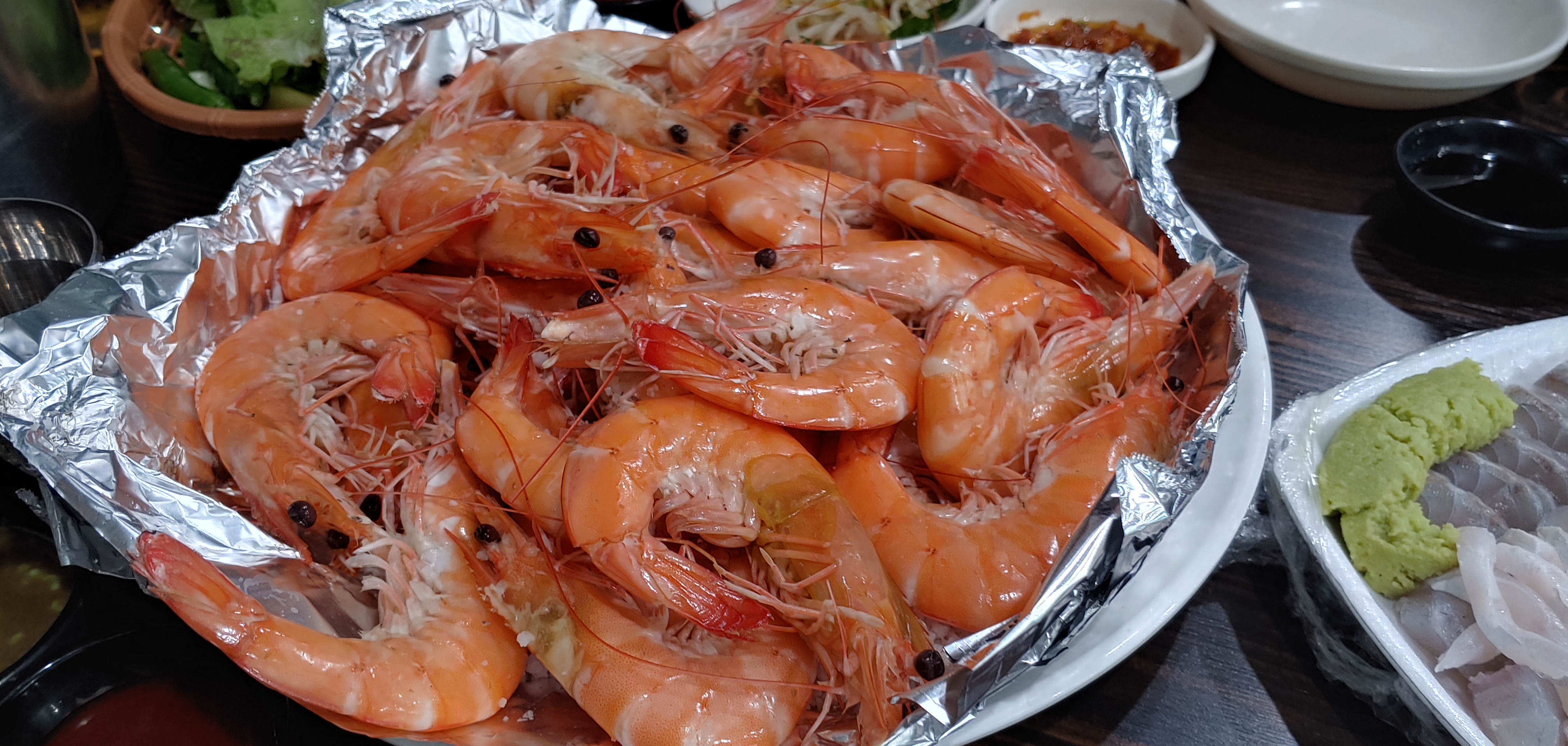 곧이어 새우도 나왔다. 생각보다 알이 컸다. 양도 많아 보이는데 정말 순식간에 다들 먹었다.