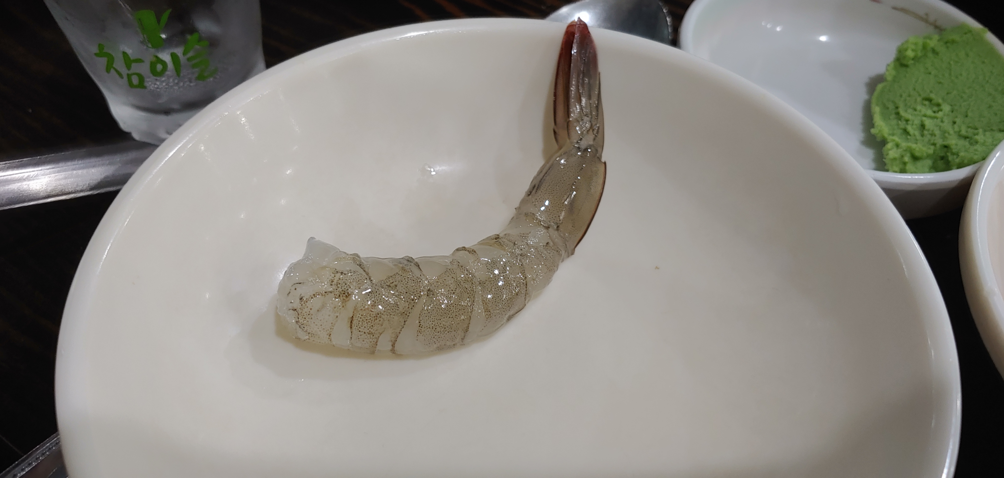 엄청 또실또실한 생새우. 까는 사람 말로는 싱싱해서 그런지 껍질까는데 시간이 너무 어렵다고 했다. 일식집에서 새우회를 많이 먹었는데, 손이 많이 가나 보다. 그래서 비싼가?
