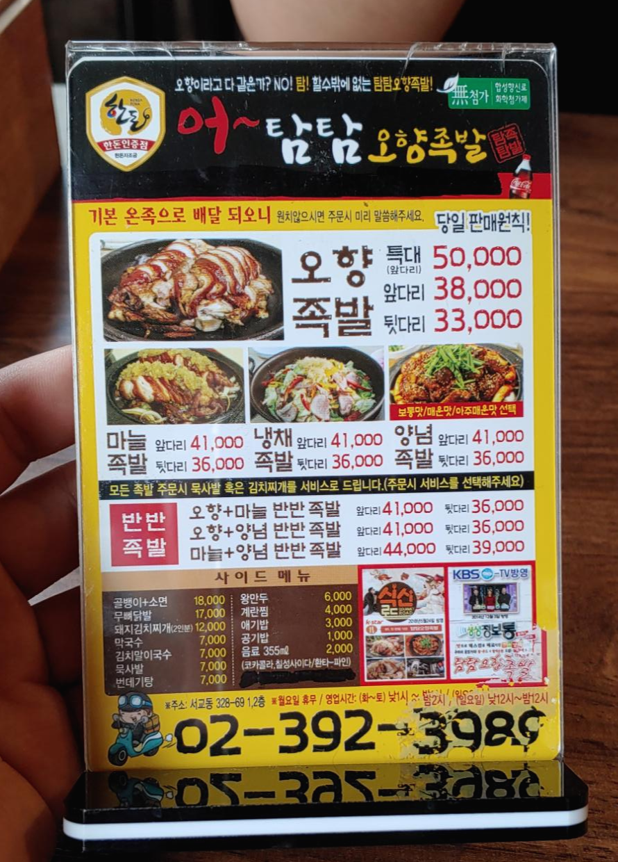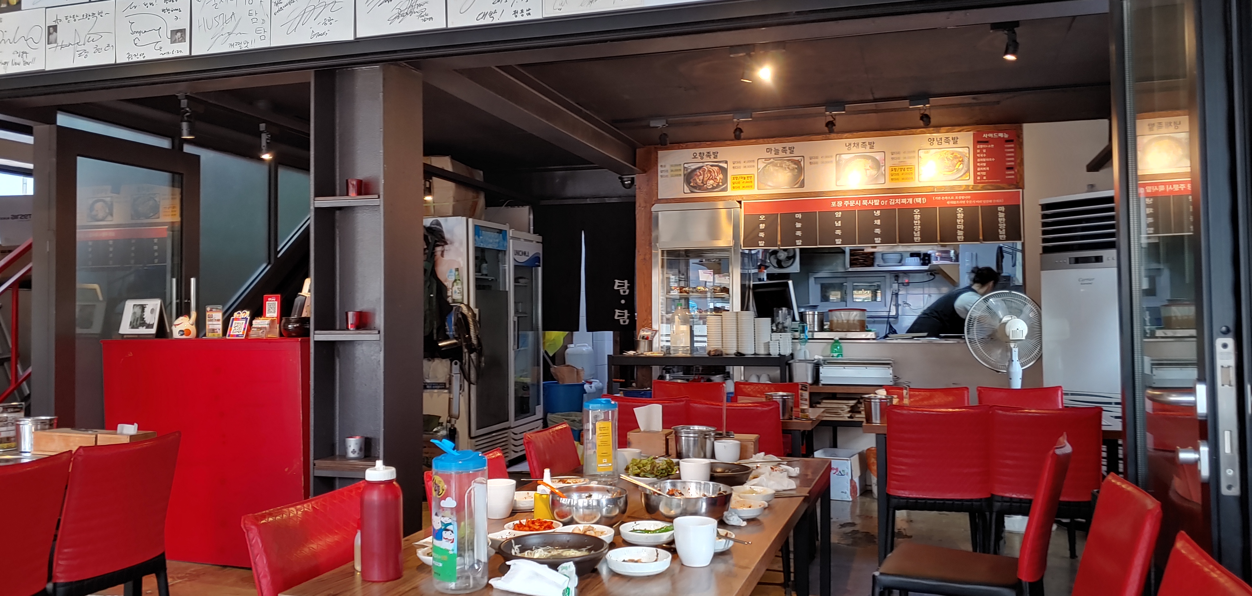 더러운데 이런 것까지 찍게 되었다. 가게를 나쁘게 이야기하고자 하는 게 아니라 모습을 보여주고자 한 것이었다. 홍대에다가 주말이긴 하지만 오후 1~2시쯤이어서 그런지 점심 손님은 그렇게 많은 것이 아닌 것으로 보인다. 하긴 점심부터 족발은 솔직히 처음이었다.