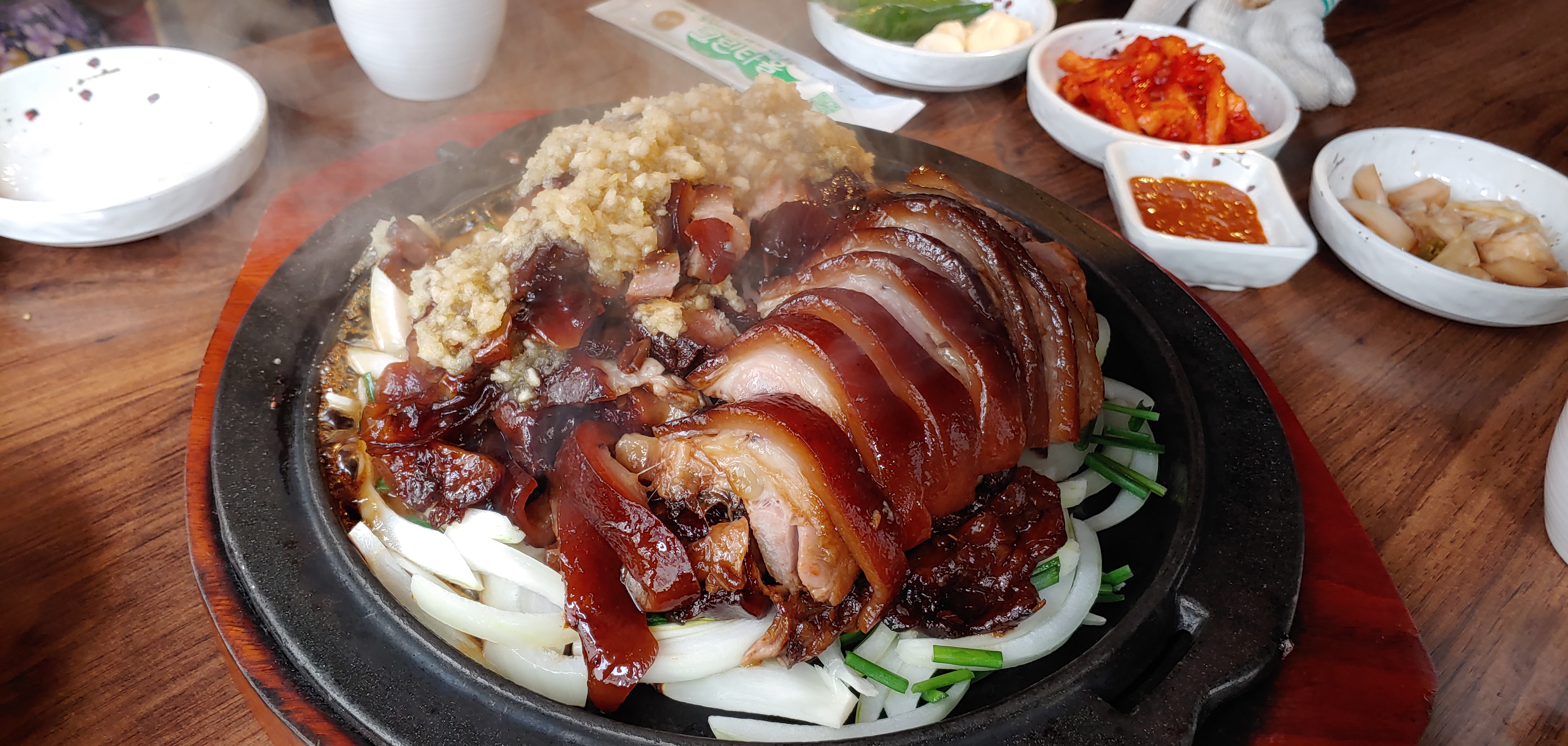 요릿집에서 나오듯이 뚜껑이 닫혀서 나와서 사장님이 직접 열어주고 설명해 주셨다. 아마도 점심때고 사람이 없어서 친히 설명을 해주신 것 같다. 그리고 어떻게 먹어야 맛있다고 설명을 해주셨다. 게다가 마늘 양념에 자부심이 있으신지 다른 데랑 다른 맛이 있을 것이라고 하시고, 맘에 안 들면 말씀하라고 하셨다.