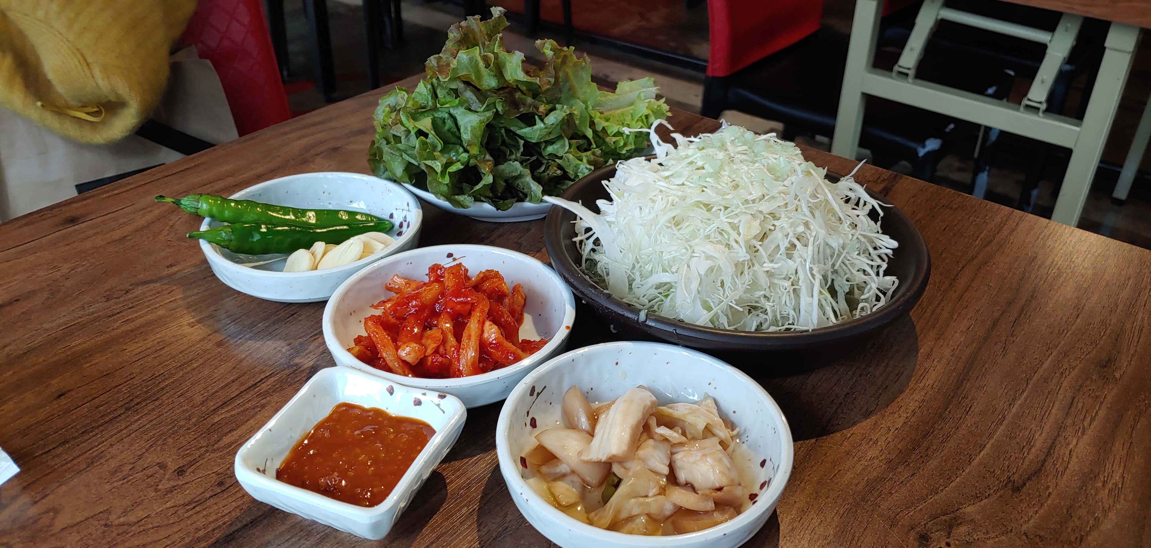 말씀대로 먹으면 맛있었다. 하지만 난 새우젓 스타일을 좋아해서 고기와 야채를 나중에는 따로 먹었다.