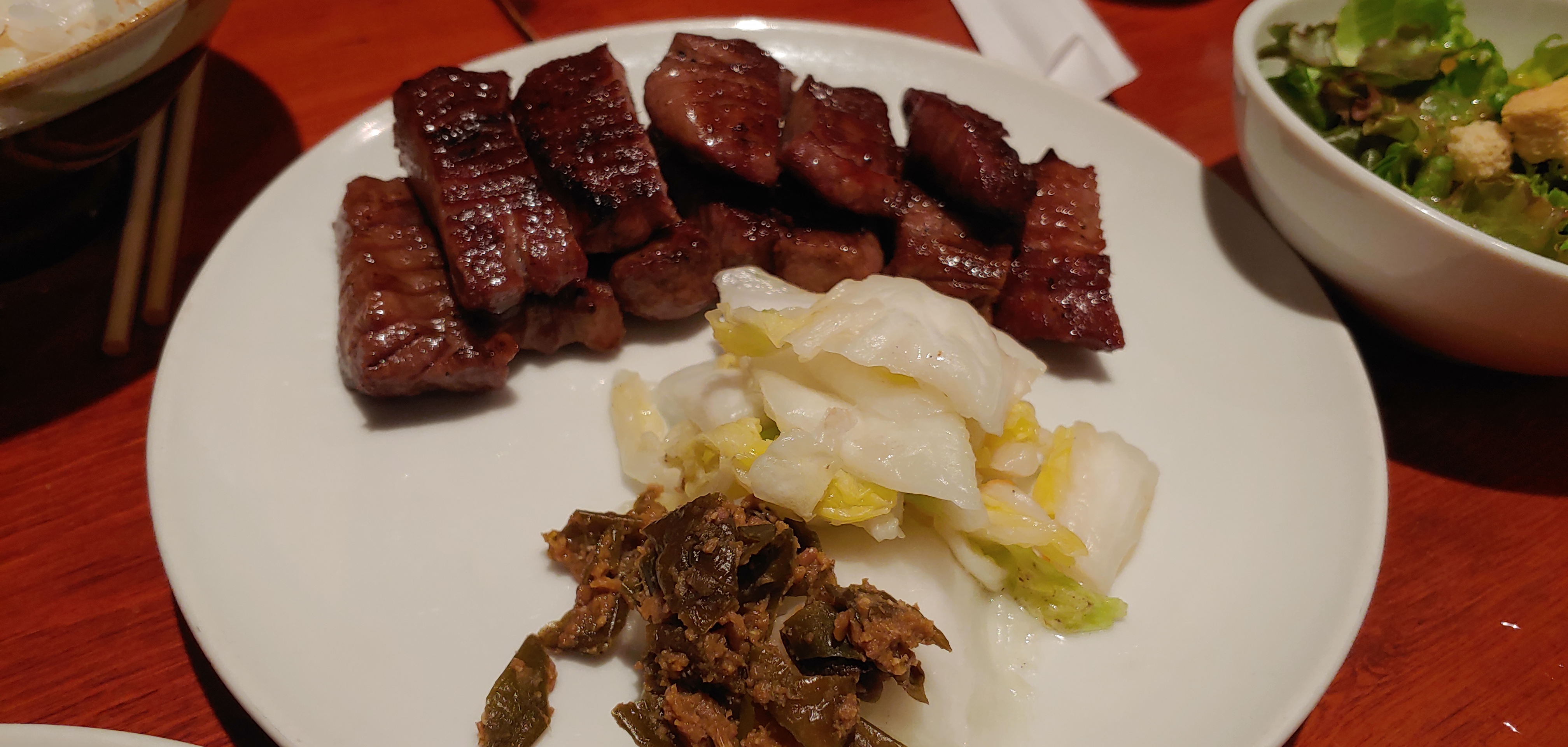 나는 가장 밑에 있는 종류별로 다 나오는 것으로 주문하기로 했고, 같이 오신 분은 규탕? 고기만 있는 것을 먹기로 했다.