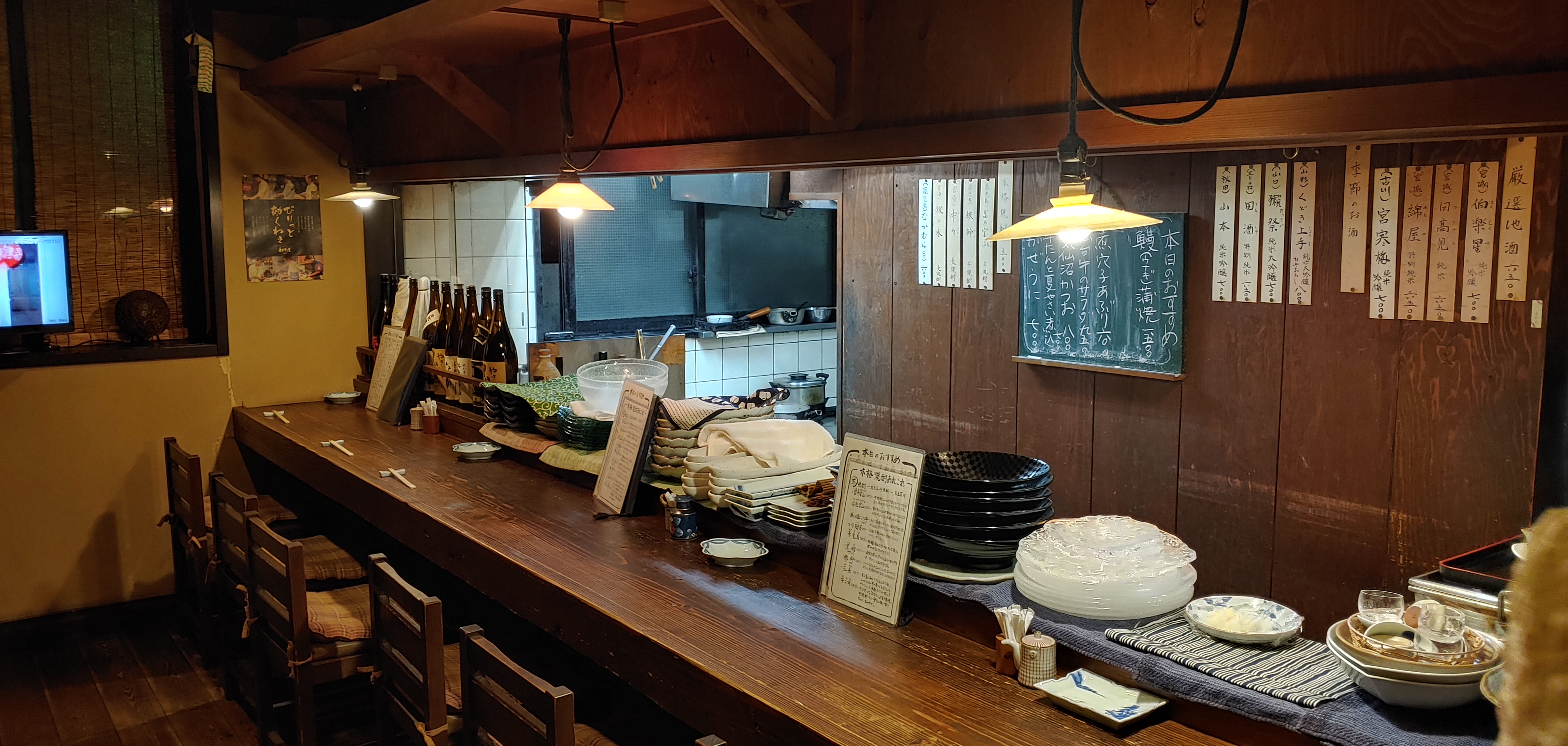 우리는 이런 홀에 가진 않고 2층에 있는 룸으로 갔었다. 외국인들이 거의 오지 않아서 인지 메뉴도 다 일본어였고, 알아서 다 시켜주셨다. 사케나 술도 나름 이 동네에서 좋다는 걸로 시켰는데 다 맛났었다. 에어 재팬? 이런데서 1등석에 나온느 사케라고 했다.