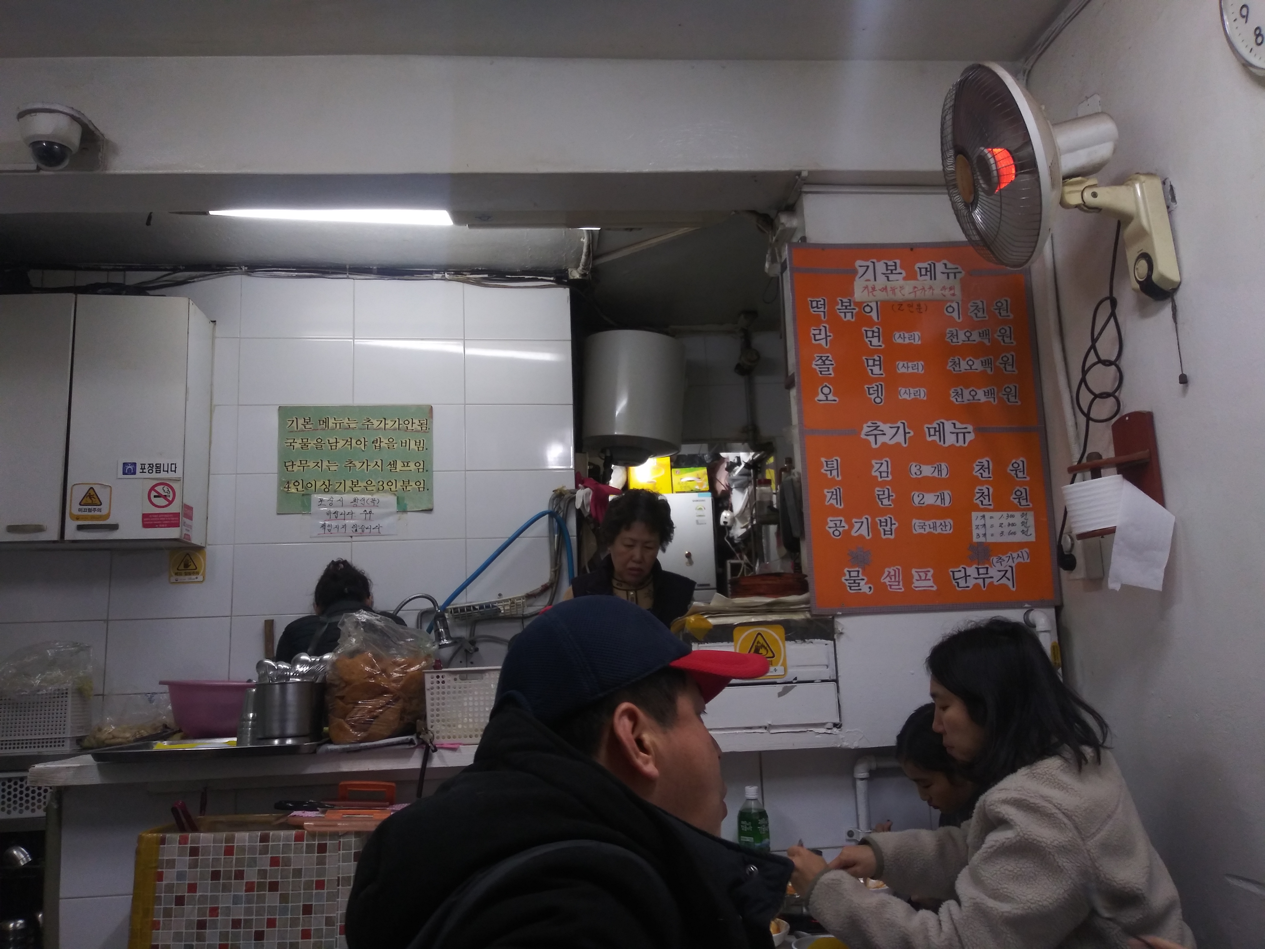 가격을 보면 놀란다. 떡볶이가 무려 2,000원이다. 떡볶이 라면 오뎅 튀김 계란을 먹었는데, 무려 7,000원이 나왔다. 정말 싸다.