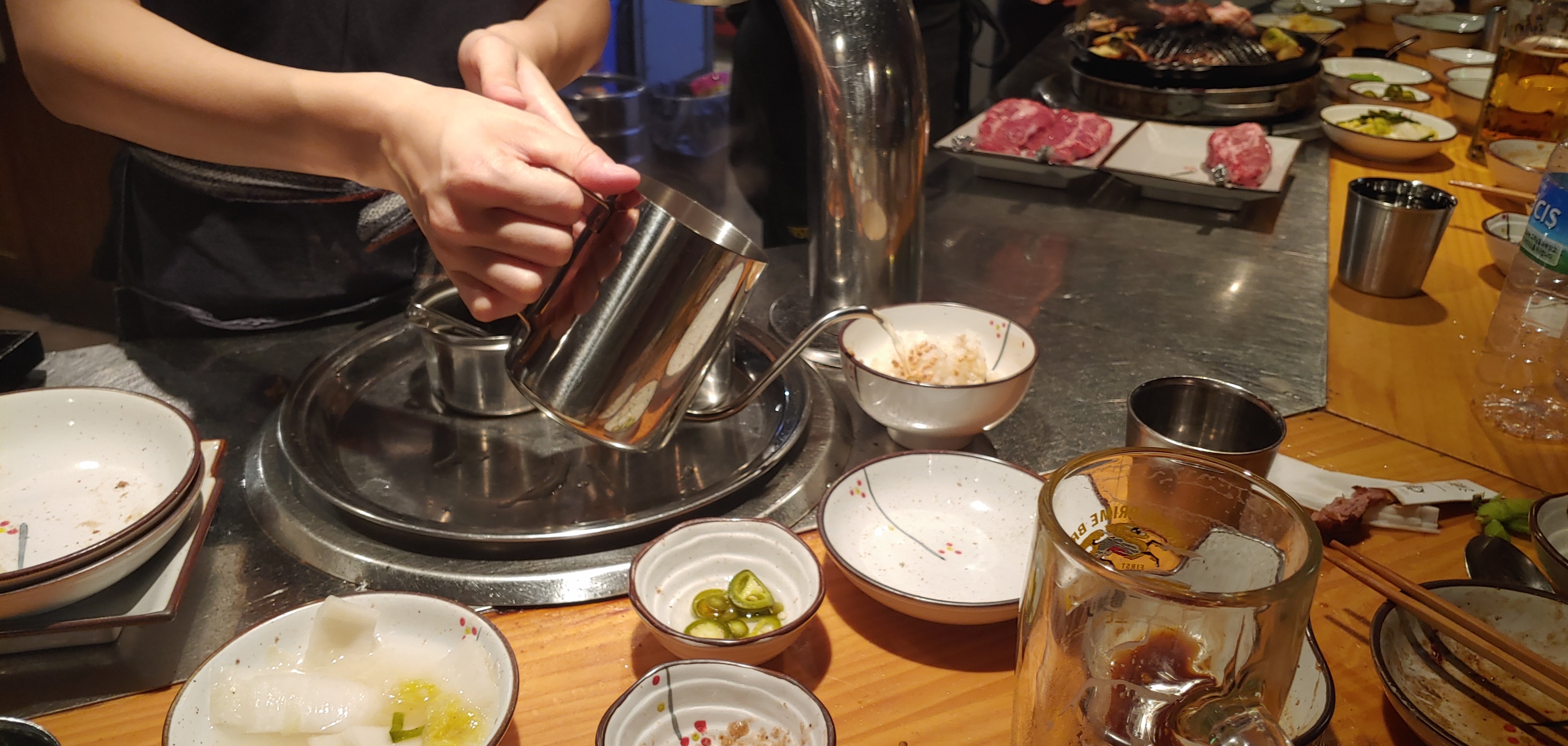 처음에 사진을 찍으려고 했는데 연기 흡수하는 기둥? 때문에 그림자가 생겼었다. 그러더니 사진 잘 찍어주라고 옆으로 치워 주셨다. 여기 정말 서비스 예술이다.