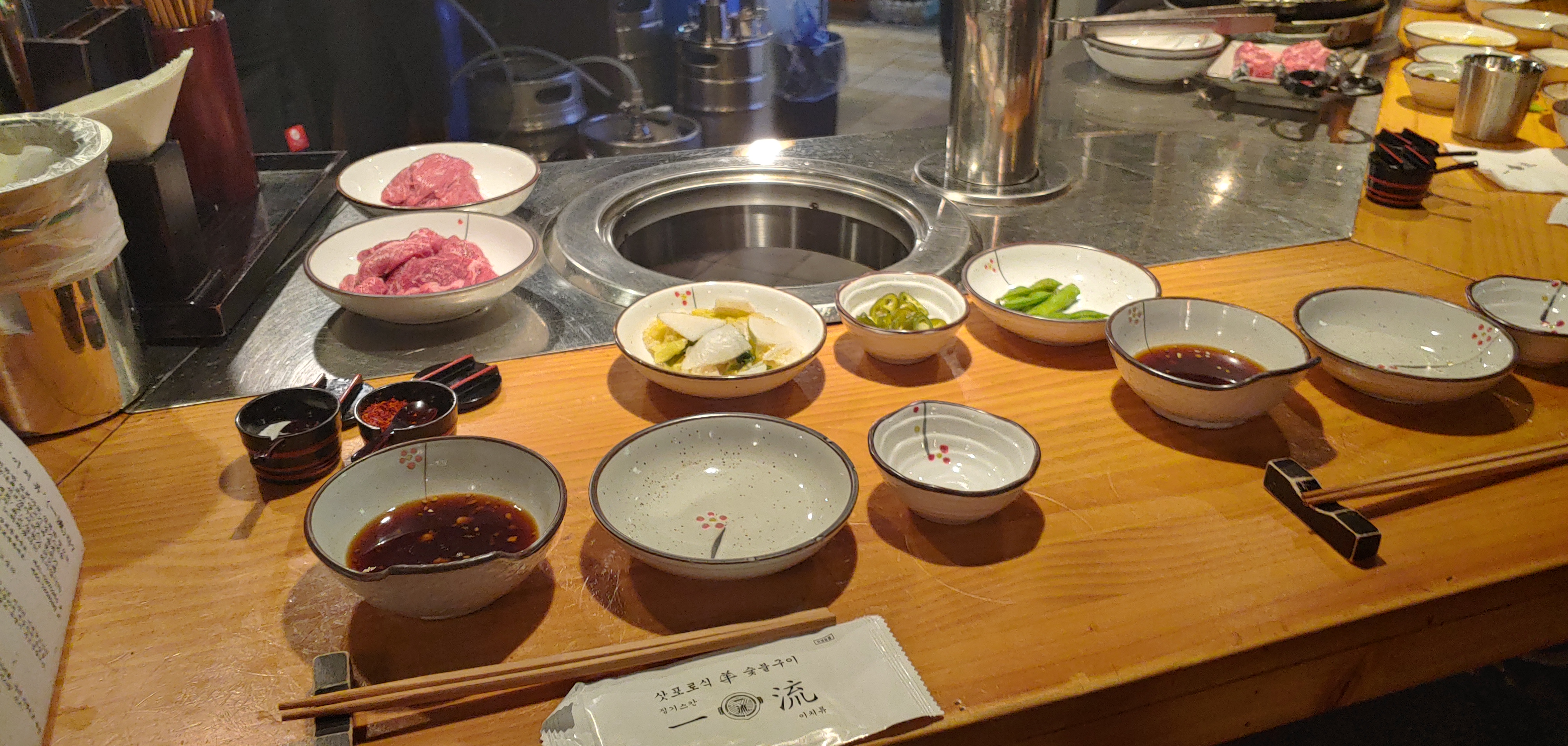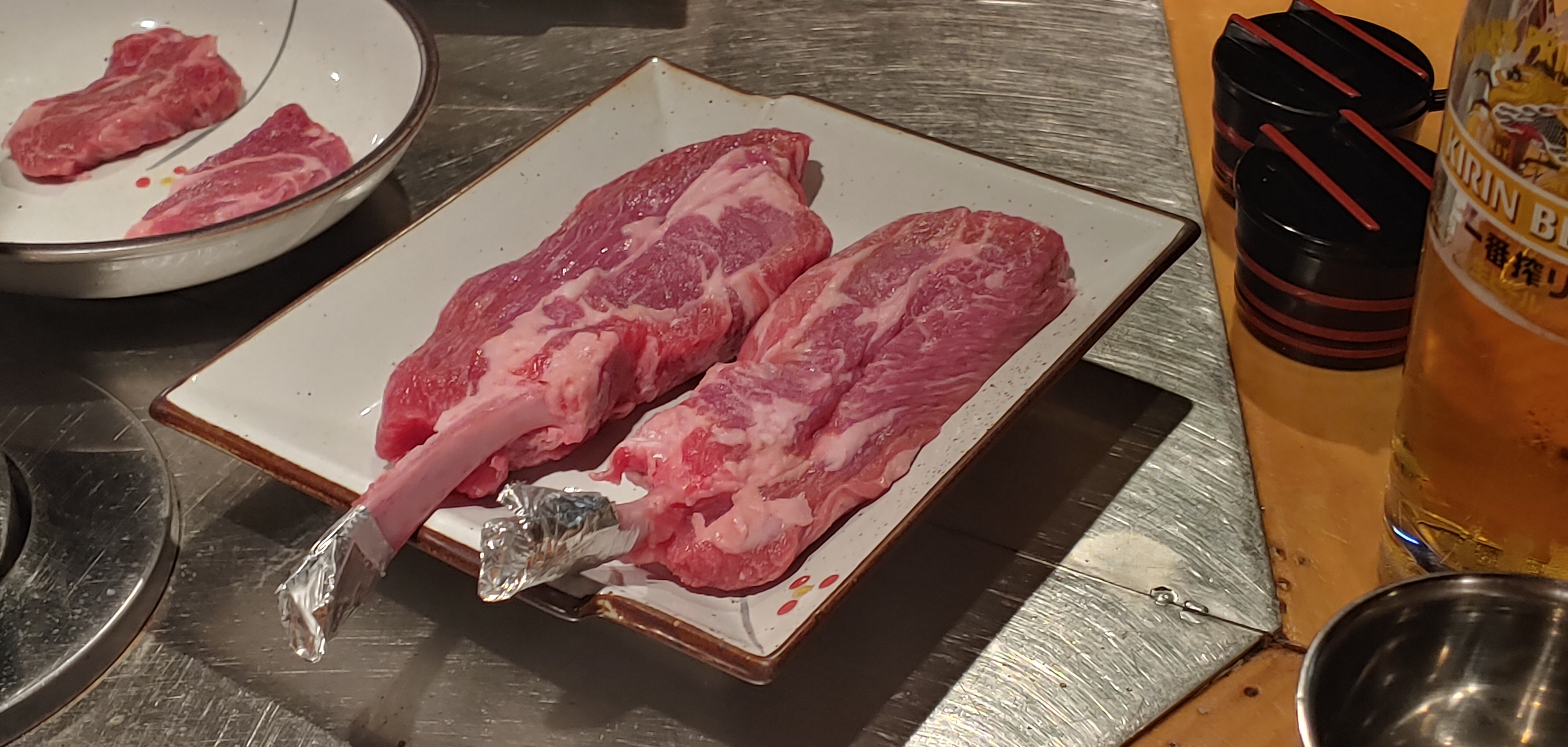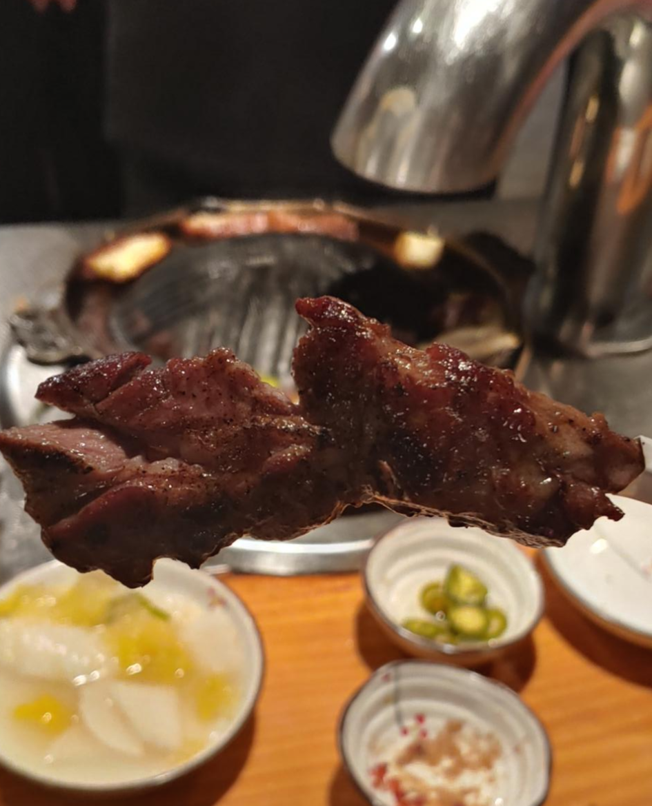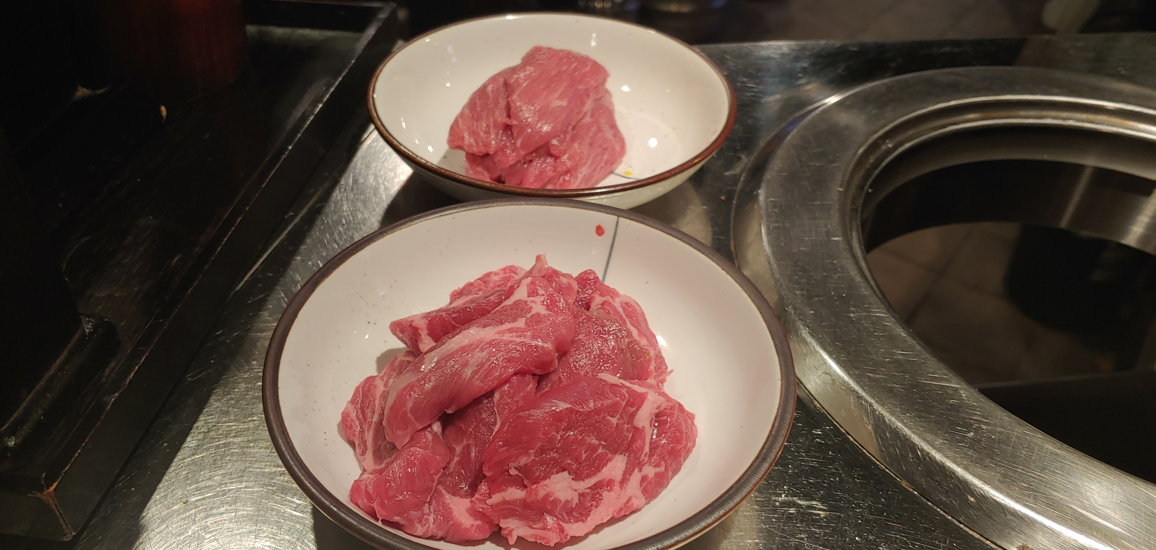 비싸다고는 들었는데 확실히 비싸다. 맛있게 먹으려면 위에서 부터 하나씩 시키면 된다고 한다. 담백한 순서인거 같다. 살칫살 -> 생등심 -> 양갈비 이렇게 먹기로 결심하고 우선 살칫살 1인분 생등심 1인분 시켰다.