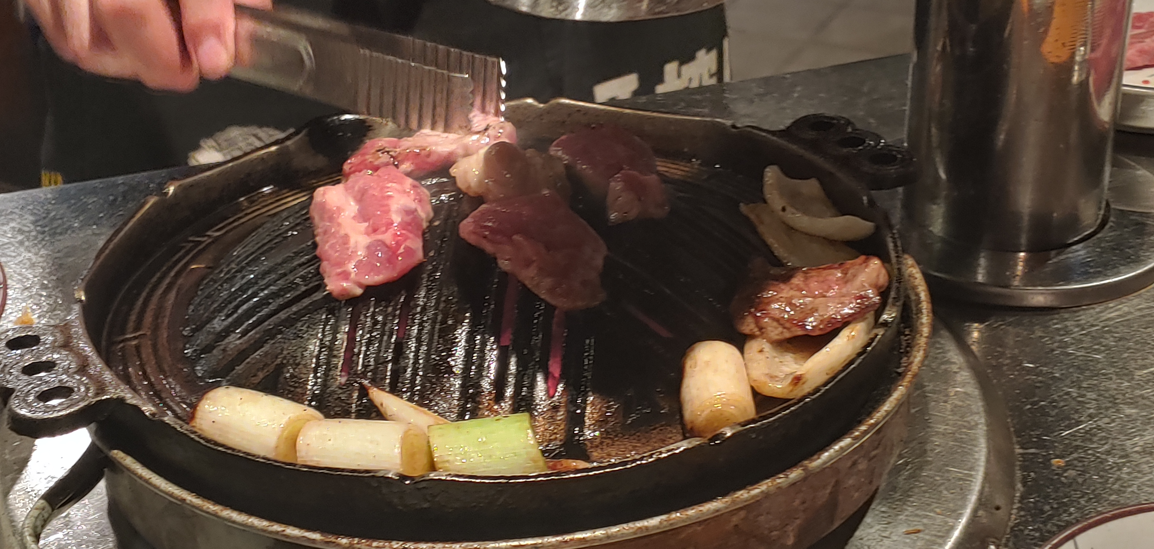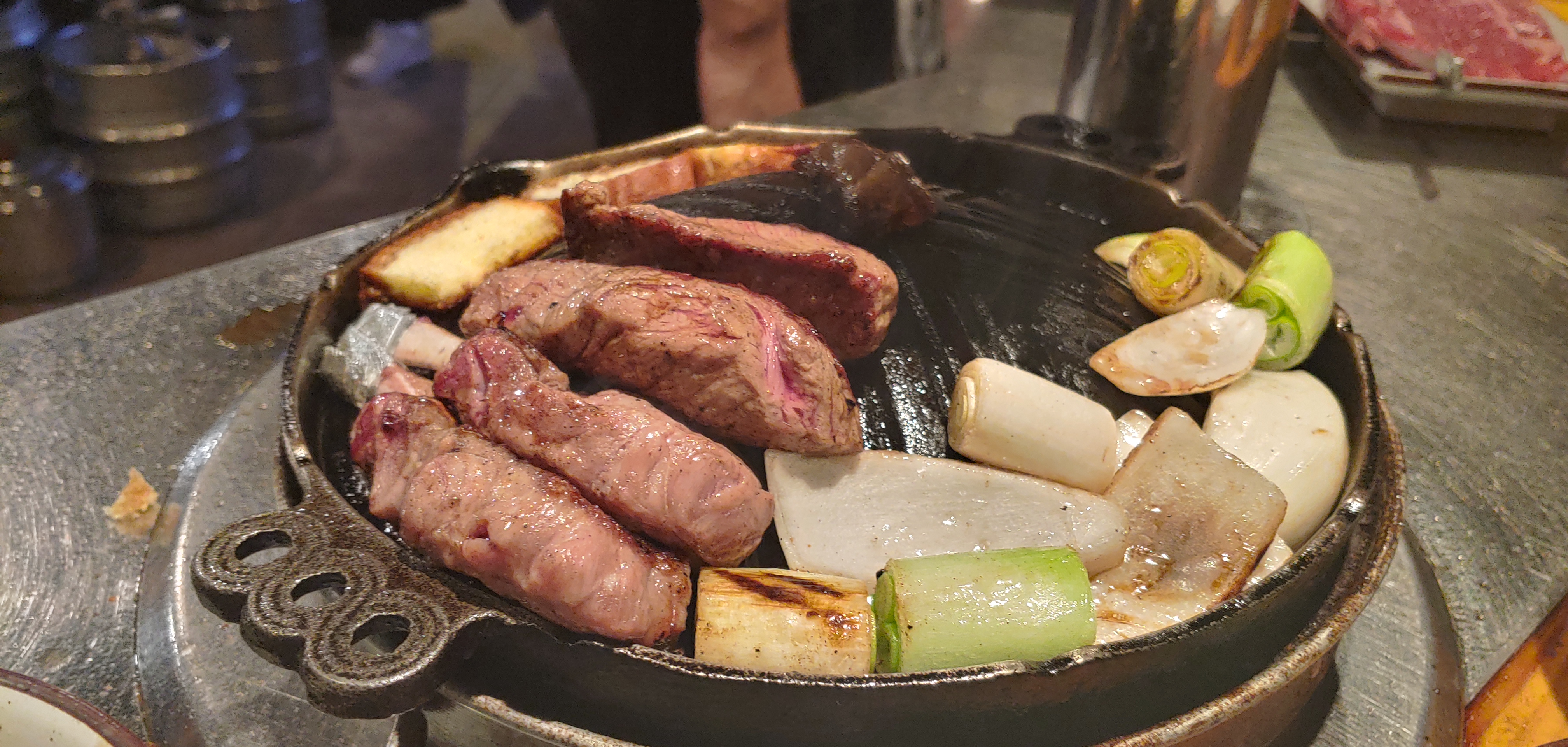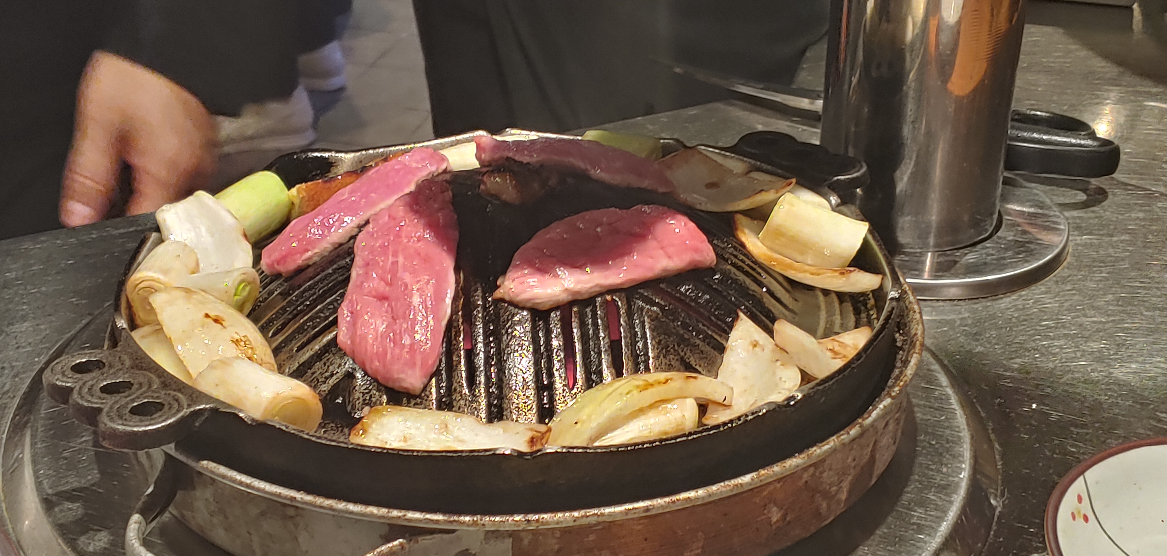그릴 위에 양파와 파를 올려 같이 구워주는데, 끝까지 계속 준다. 파가 엄청 맛있다.