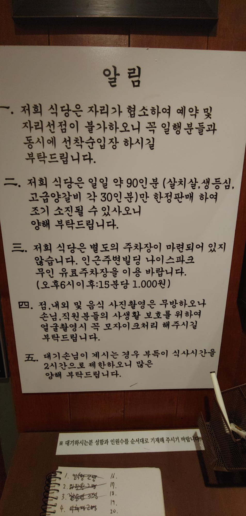 금요일 저녁에 퇴근하자마자 6시20분쯤 도착했는데 밖에는 한팀만 있었다. 다행이었다. 넓지 않은 가게라고 들어서 엄청나게 대기하고 있을 줄 알았는데 일찍와서 그런지 사람이 없었다.