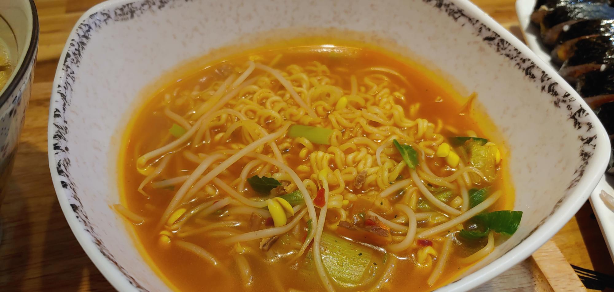 이 집의 마음에 드는 점은 라면이랑 거의 동시에 김밥이 나왔다. 엄청나게 중요한 것이다. 그 이유는 바로 라면과 김밥을 같이 먹을 수 있기 때문이다. 가게의 기본 자세가 되어있는 집이다. 이 집~!!! 다들 생각해보면 대부분이 김밥이 먼저 나온다.