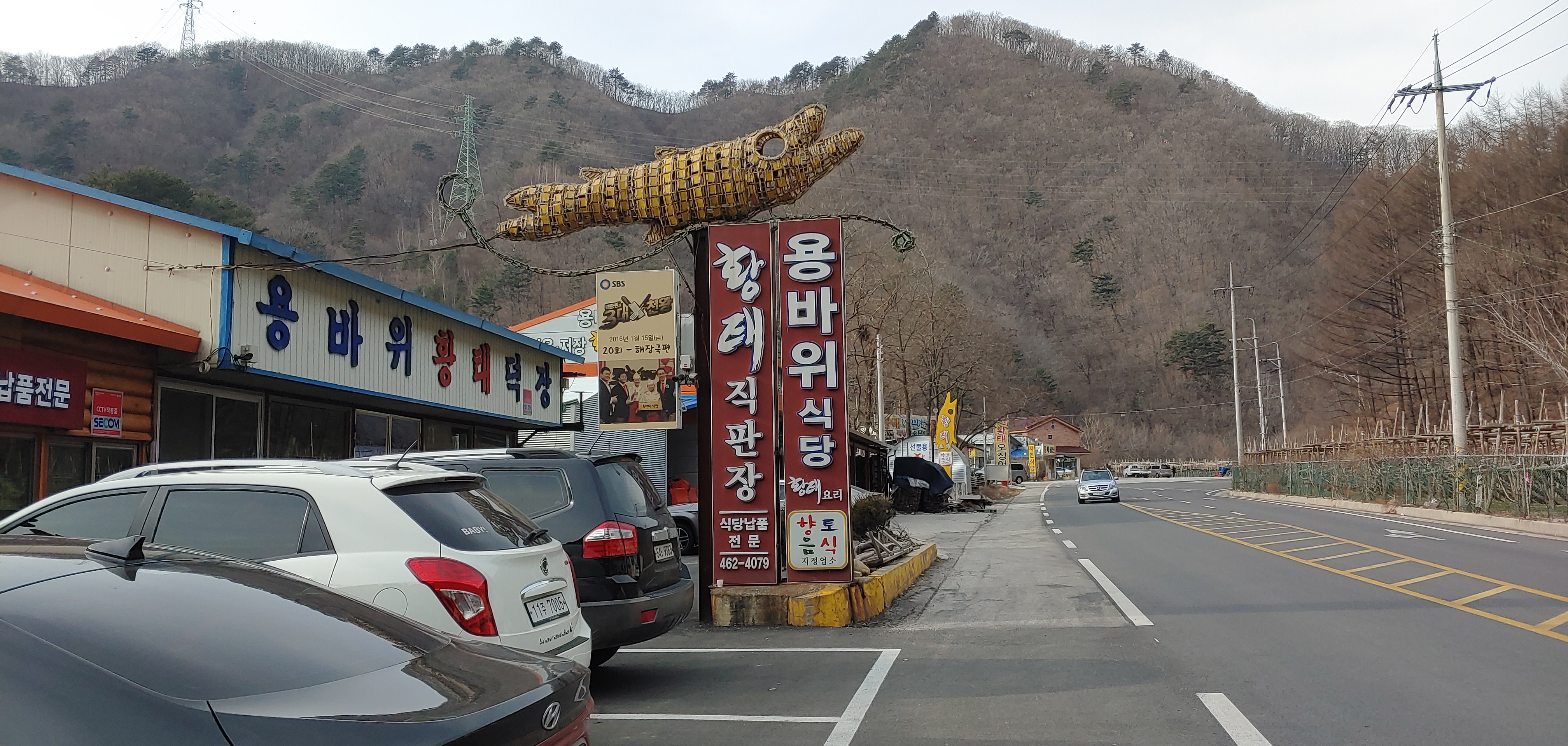 용바위 식당 스킨스쿠버 후, 용대리에서 만나자고 해서 음식점인지 알았다. 알고 보니, 인제? 쪽에 용대리라는 곳이 있었다. 황태로 유명한 동네인 것 같았다. 그날 비가 오고, 안개가 껴서 주위가 이뻐보였다...
