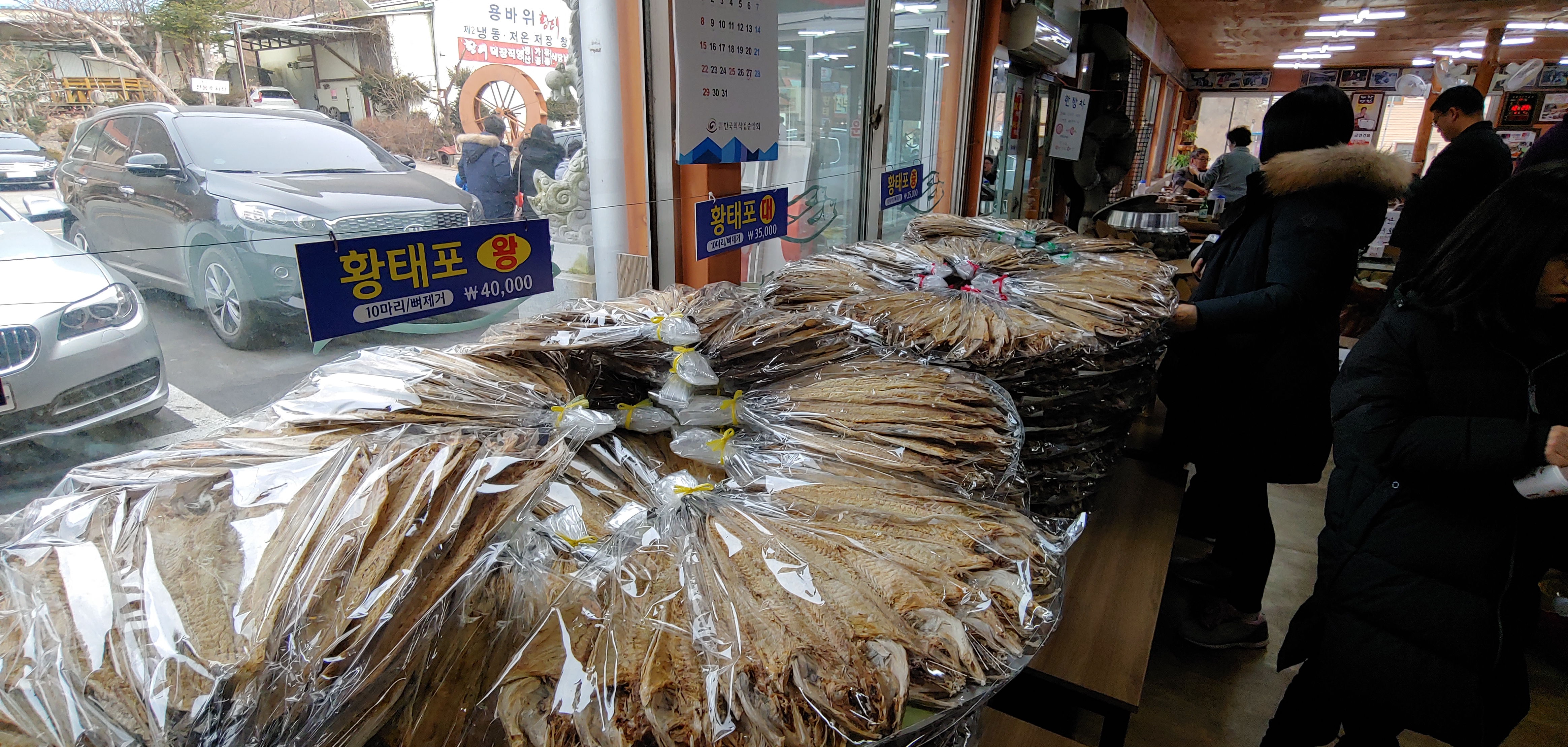 일요일 점심이라 그런지 사람이 꽤 많았다. 그렇다고 막 웨이팅을 하지는 않았다. 음식이 초반에 나오지 않아서 안에서 파는 제품 구경을 했다. 마침 엄마가 황태 좀 사오라고 하셔서, 신년 선물 드릴겸 겸사겸사 구매하기로 했다.