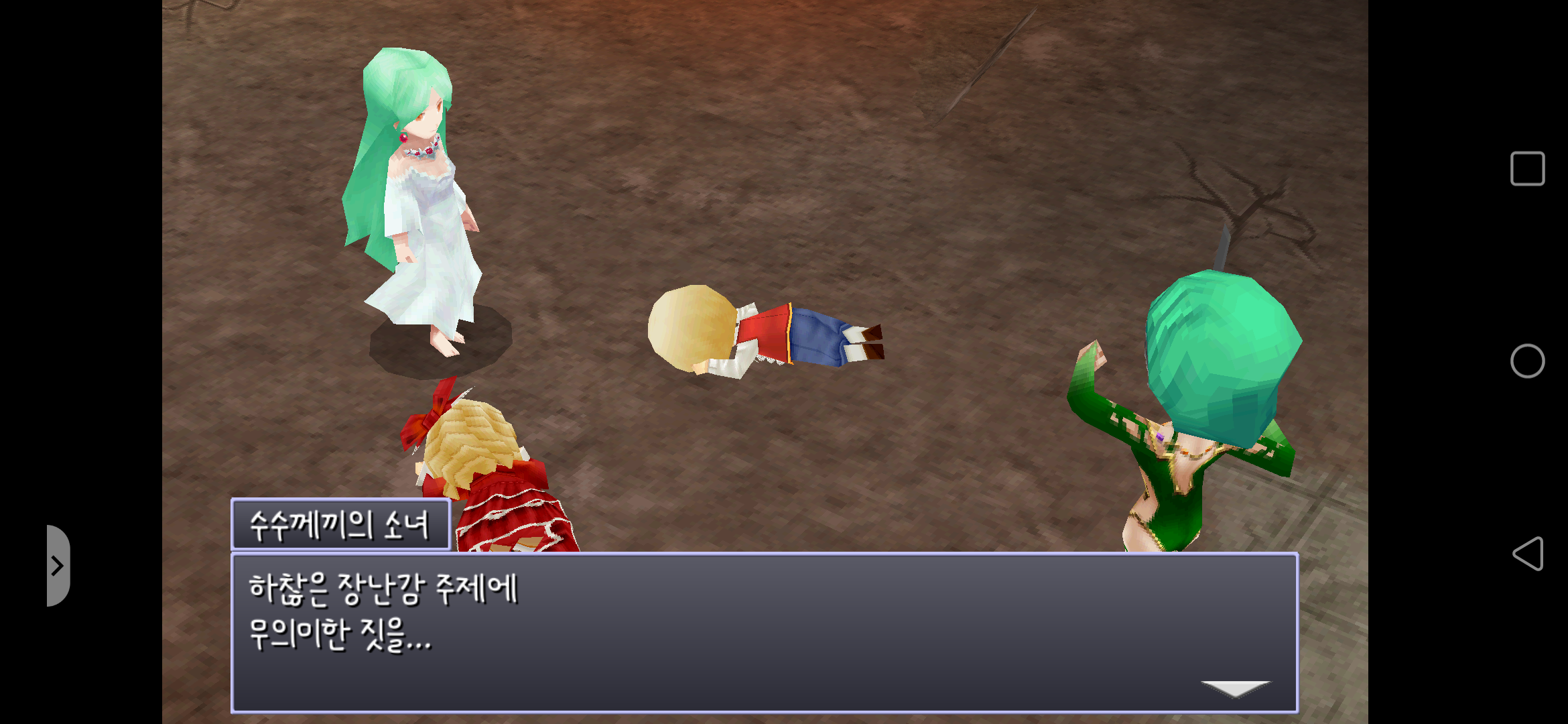 처음의 주인공~! 아직 많이 진행을 한 것은 아니지만 전편을 하면 좋아 보이지만 그렇지 않아도 괜찮아 보인다. 그래도 FF4 오리지날을 했다면 이 캐릭터 들의 누구의 자손? 인지 알게 되고 크리스탈에 대한 전반적인 내용을 알 수 있을 것이다. 하지만 스토리 막 심각하지도 않아 보여 이해를 하는데는 문제 없어 보인다.