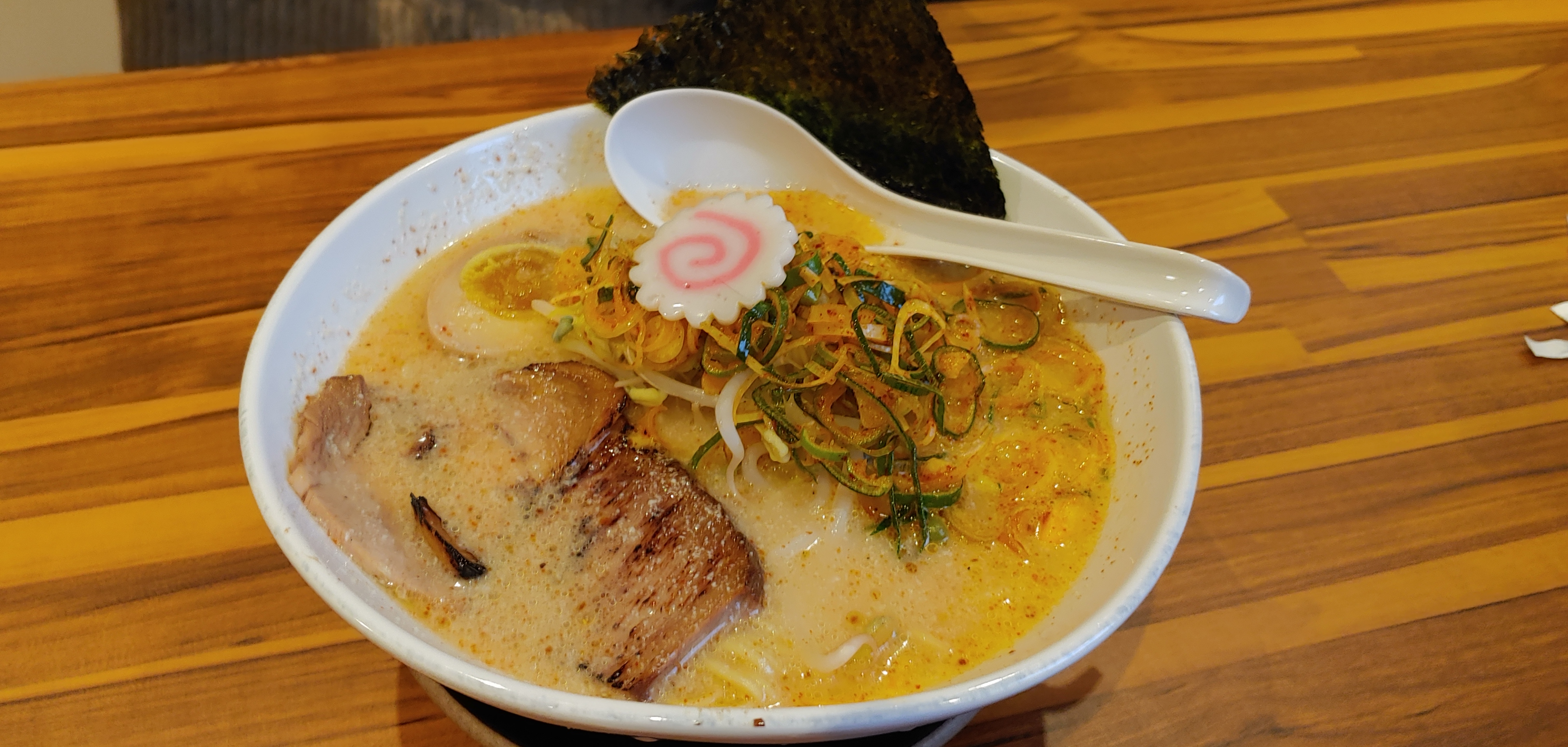 돈고츠 베이스에 일본의 그 매운 고추가루로 맛을 낸 것 같다. 나는 매운 것을 좋아하지 않아서 맘에 안들지만 여친은 좋아라 하고 맛있게 먹었다.