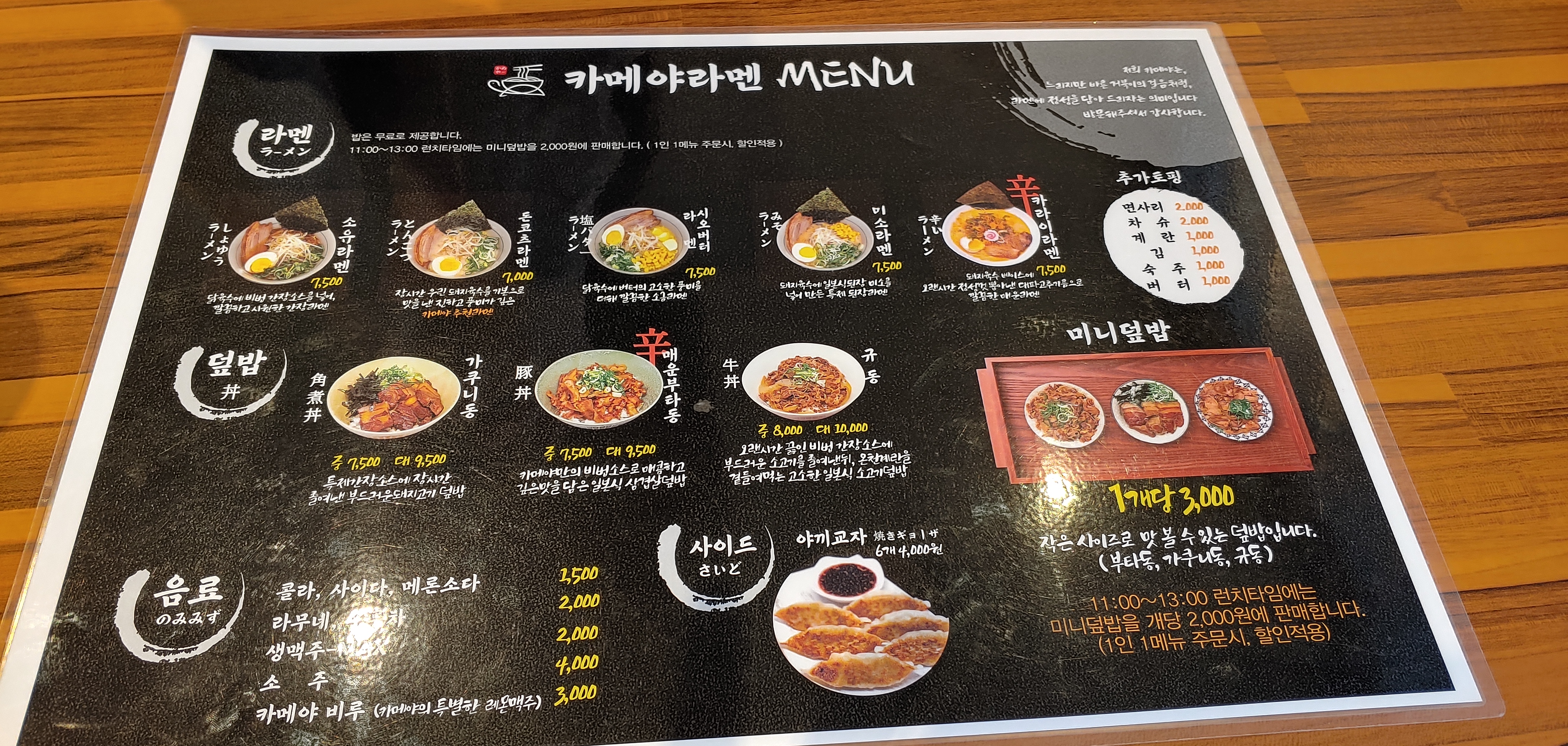 계단을 오르며 정하지 못한 메뉴를 고를 때가 드디어 왔다. 메뉴판을 보니 또 다양하여 사람을 또 고민하게 만들었다. 그래도 처음 왔으니 기본을 먹어보고자 돈고츠를 먹었다. 마지막까지 시오 버터 라멘을 먹을까 하다가 다음으로 미루었다. 미니 덮밥도 먹을까 하다가 다이어트를 생각했다. 맛있게 먹을라다가 만 칼로리가 된다. 조심하자.