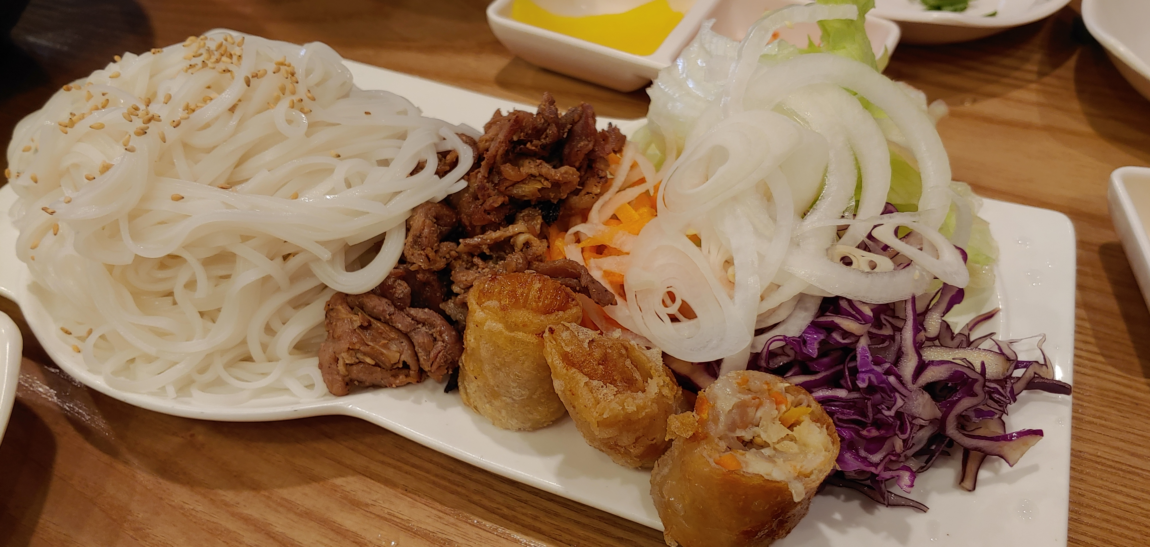먼가 골뱅이 소면과 함께 나오는 듯한 국수화 함께 분짜가 서빙되었다. 그나마 이건 쌀국수 보단 낫지만 그대로 맘에 안드는 것은 마찬가지다.
