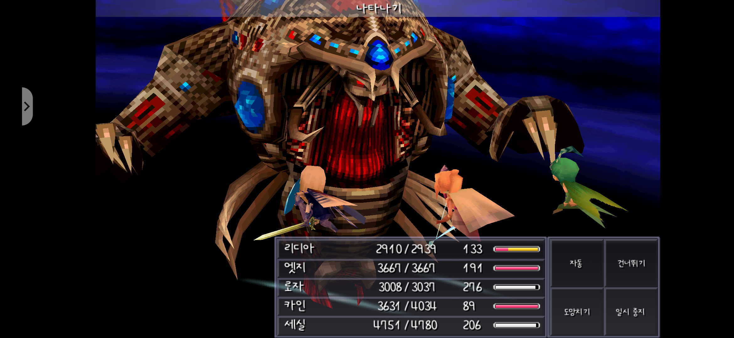 이게 처음에는 약간 이해가 안된다. 하지만 어느 정도하다보면 아 이렇게 돌아가는구나를 알 수 있다. FF4는 캐릭터들이 자주 있었다가 나가고 그래서 정말 관리를 잘해야 한다. 공략이 없으면 정말 망할 것 같다.