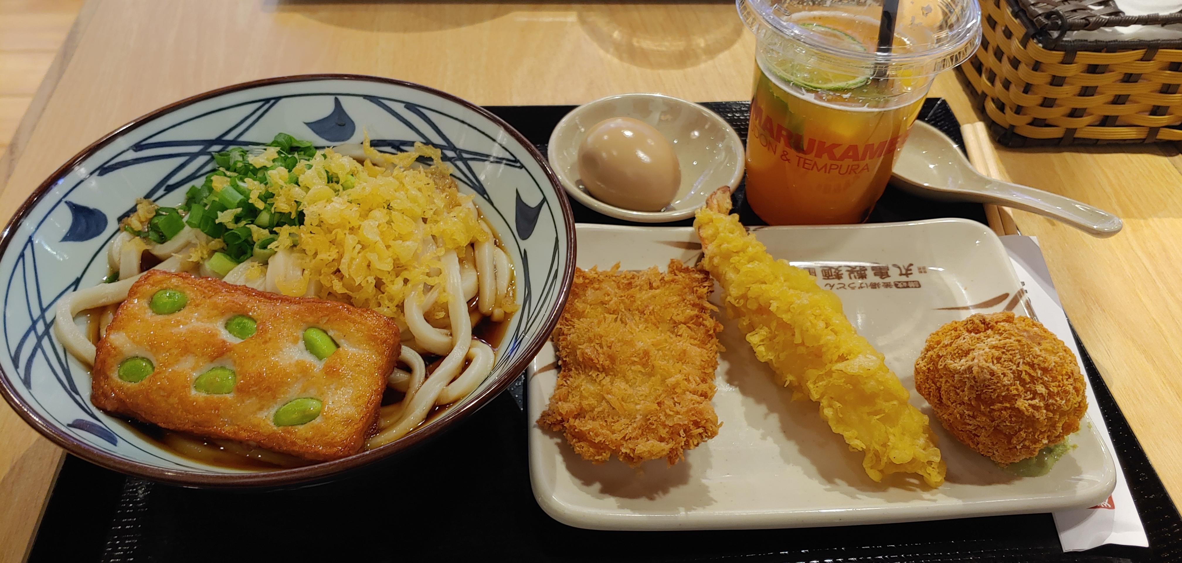 예전에 일본에서 처음 본 스타일 그대로 꾸며 놓았다. 원하는 우동을 고르고 받으면 앞으로 가면서 튀김 오니기리 등을 고르면서 나아 가면 된다.