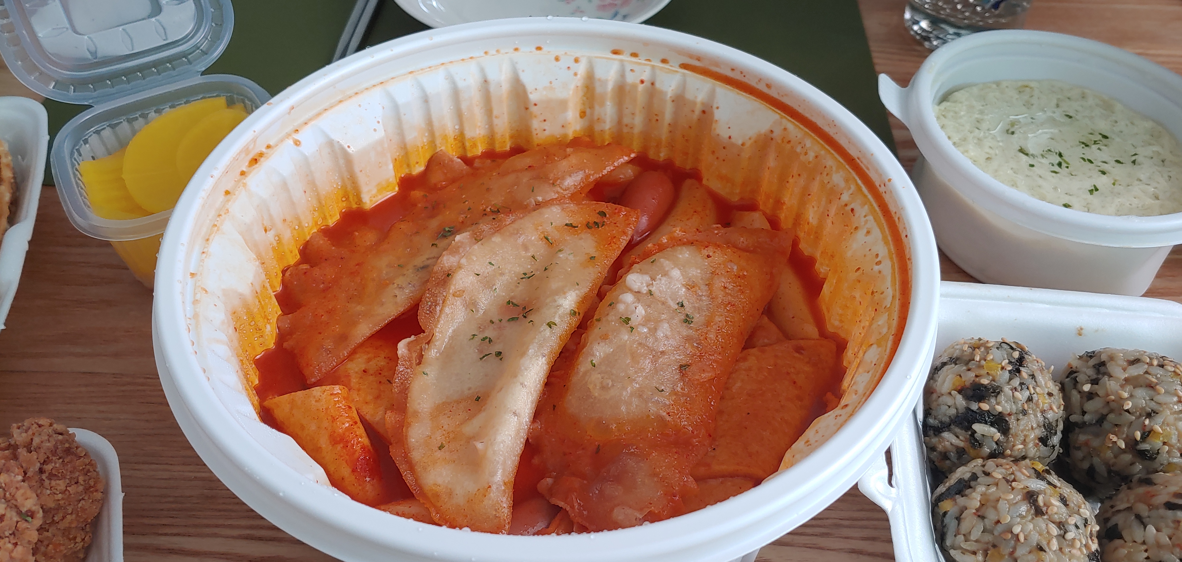 솔직히 떡볶이 초보이지만, 왜 사람들이 엽떡이 맛있다고 하는지 알았다. 먼가 먹을만은 한데, 그냥 다음에 돈주고 시켜먹기는 아쉬운 맛이었다. 다만 튀김이라도 많이 주어서 엄청 배부르게 먹었다.