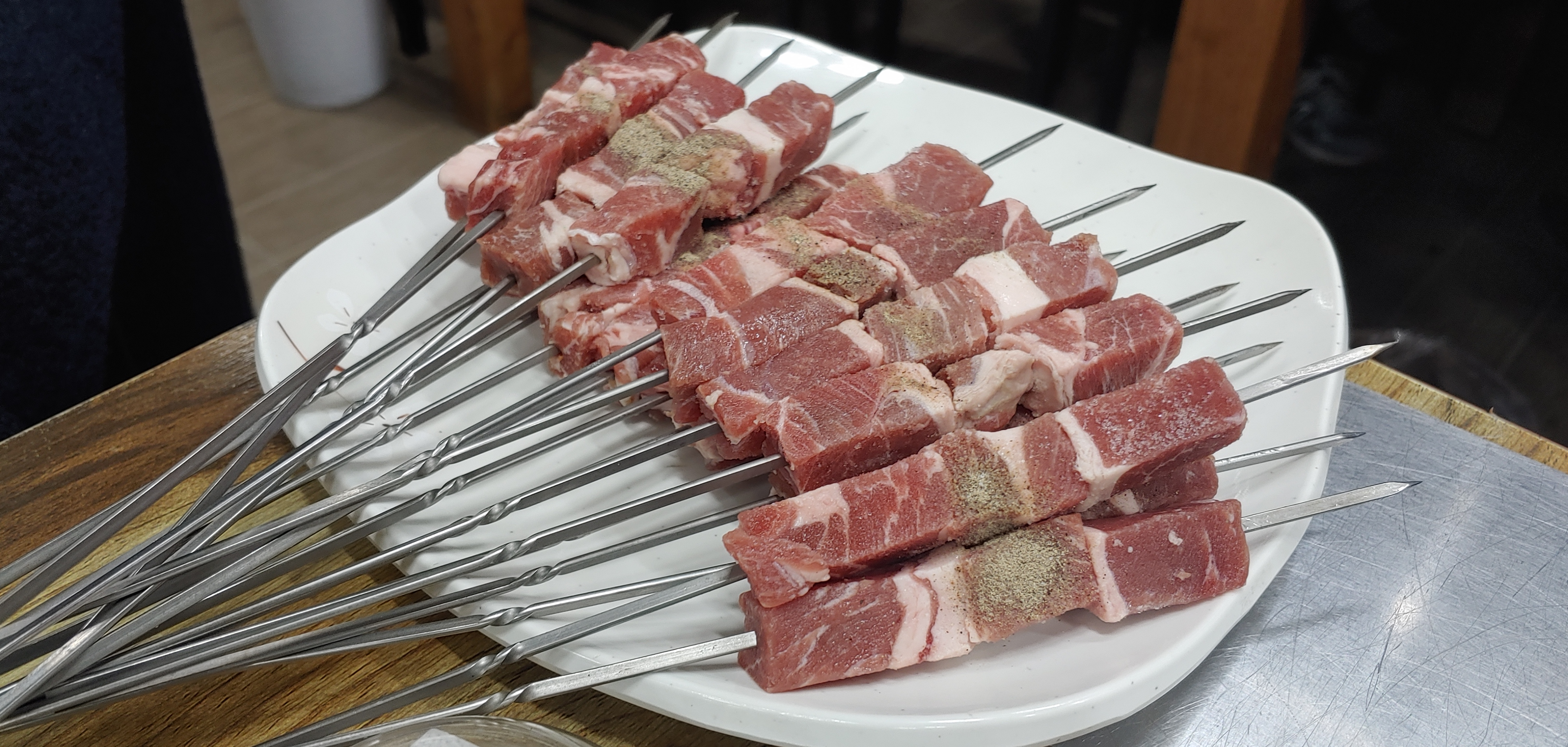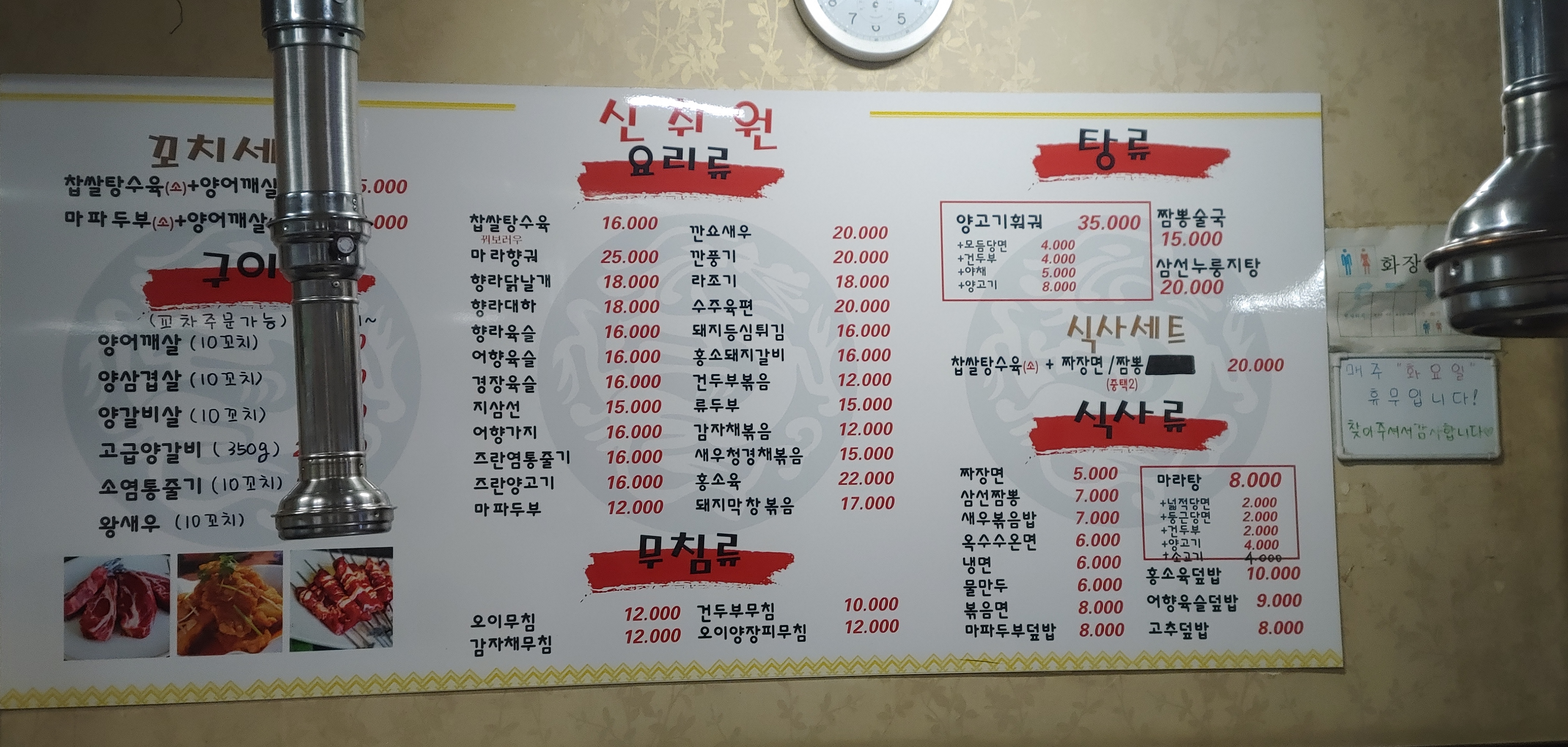 일반적인 양꼬치 집과 비슷하다. 다만 약간 중국? 음식이 다소 많은 특징이 있다. 우리는 사진에는 잘 안보이지만 꼬치세트를 먹기로 했다. 꼬치와 함께 탕수육을 좋은 가격으로 받을 수 있으니