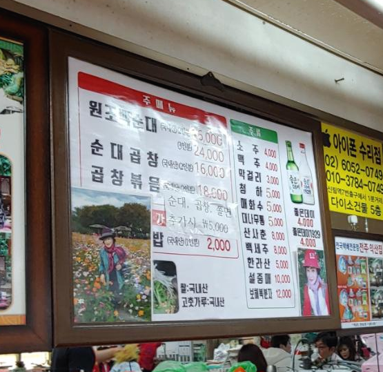 잘 보이지는 않지만, 그냥 싸다고 생각하면 된다~! 우리는 당연히 오리지날인 백순대를 시켰다.