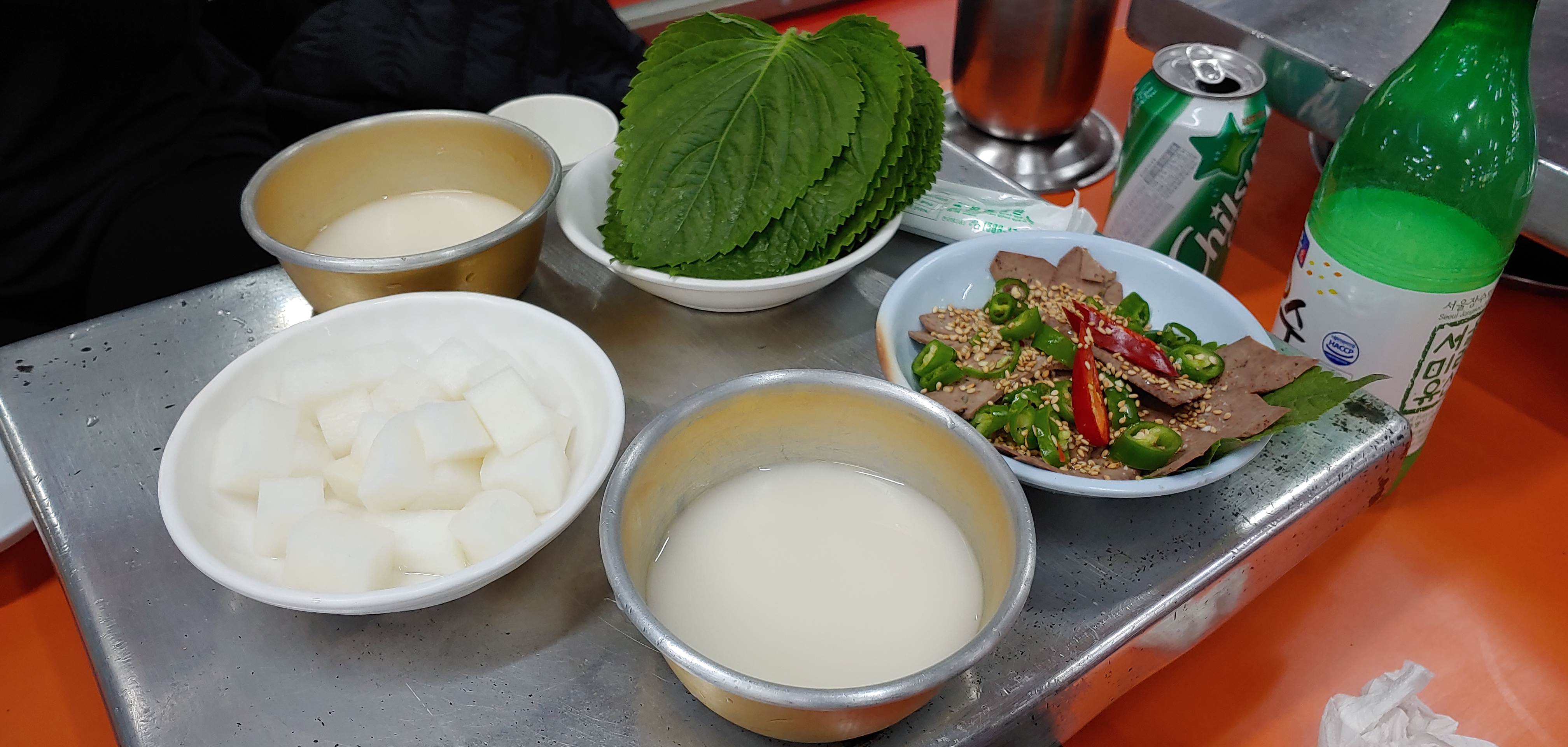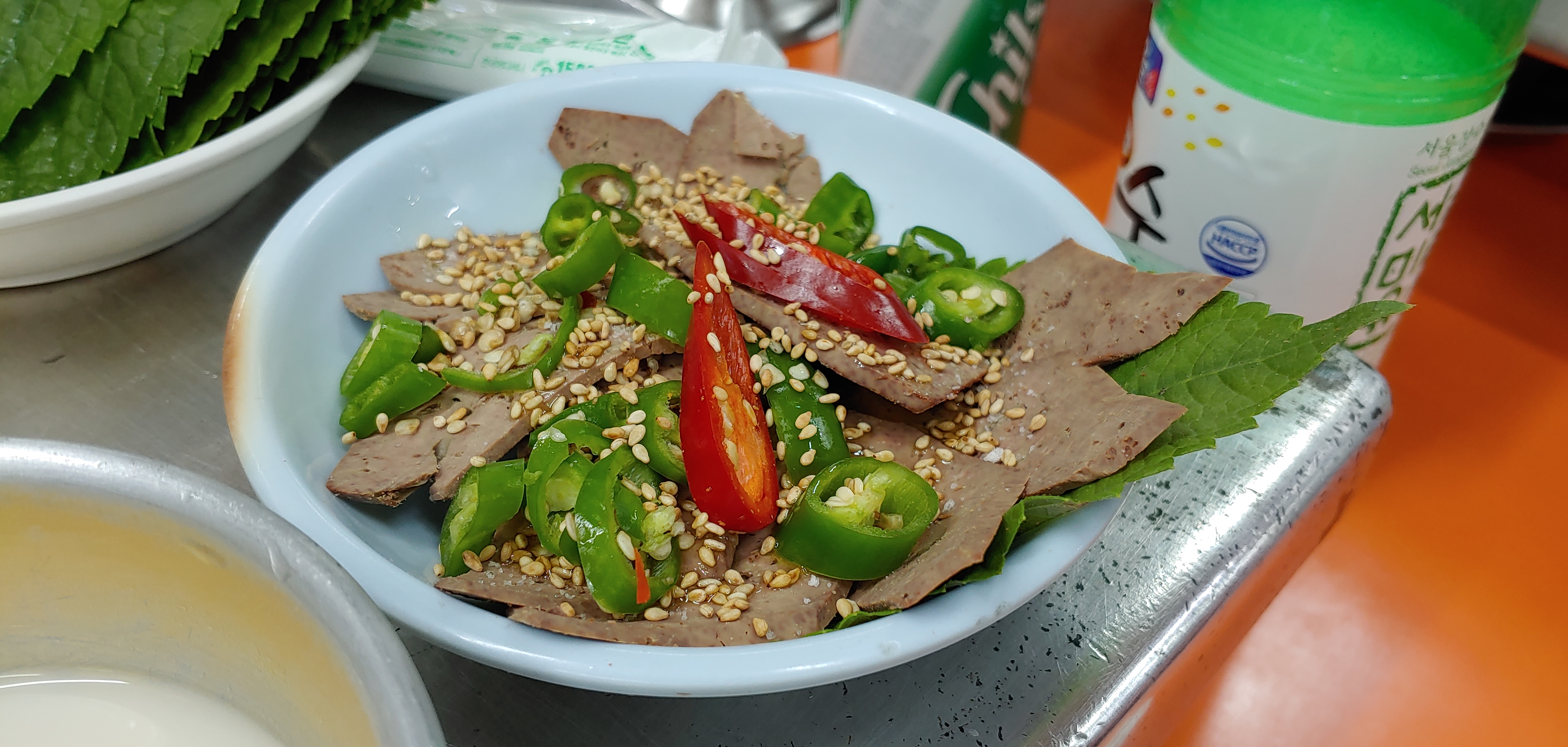 간을 삶아서 그냥 참기름 고추 소금만 넣은 것 같은데, 이상하게 맛있다. 시작부터 기분 좋게 하는 집이다.