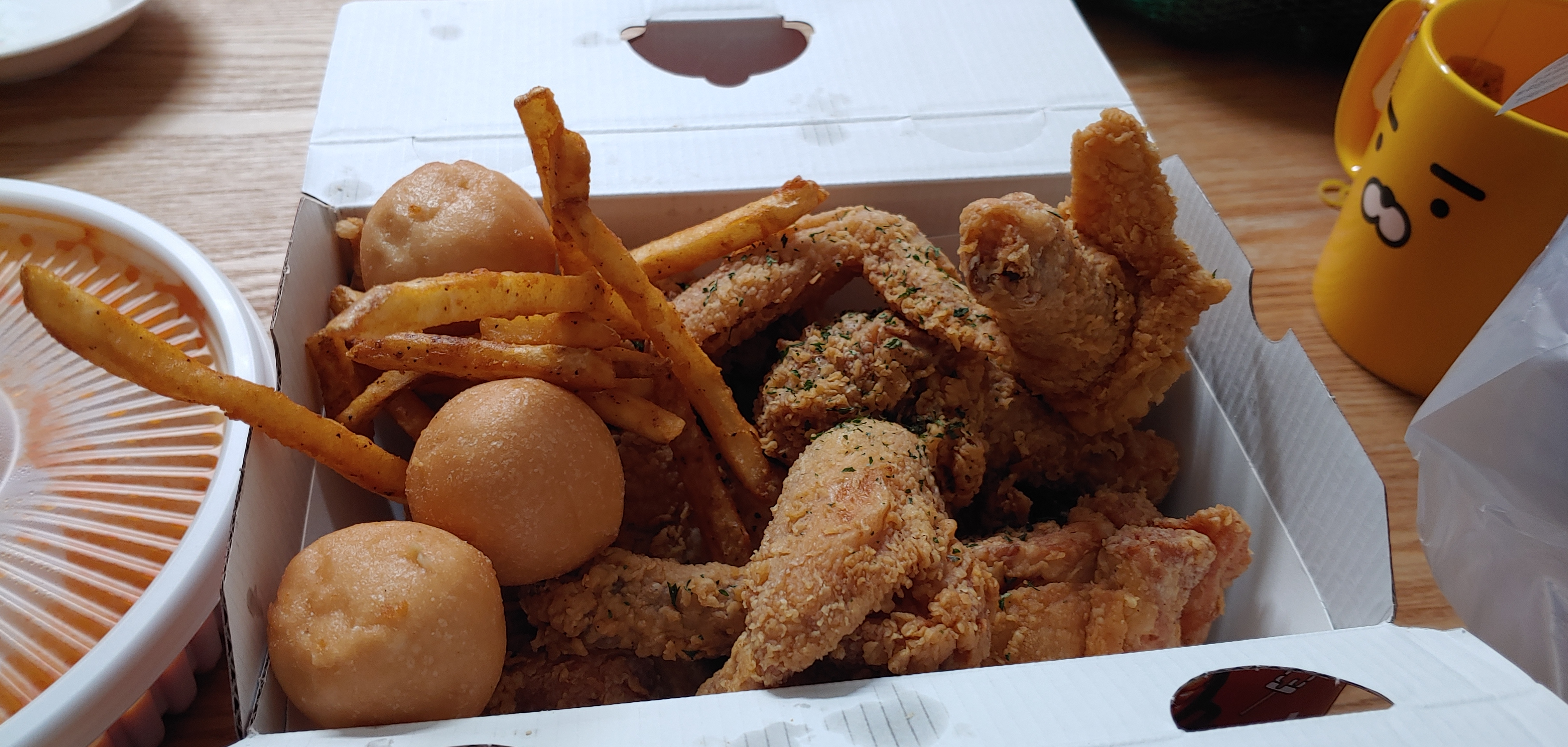 후라이드에 감튀까지 게다가 치즈볼까지 왔다. 요즘 치즈볼이 유행인가 보다. 먹기야 한다지만 난 좋아하지 않는다. 머랄까... 치즈가 고급지지 않다는 것이다.