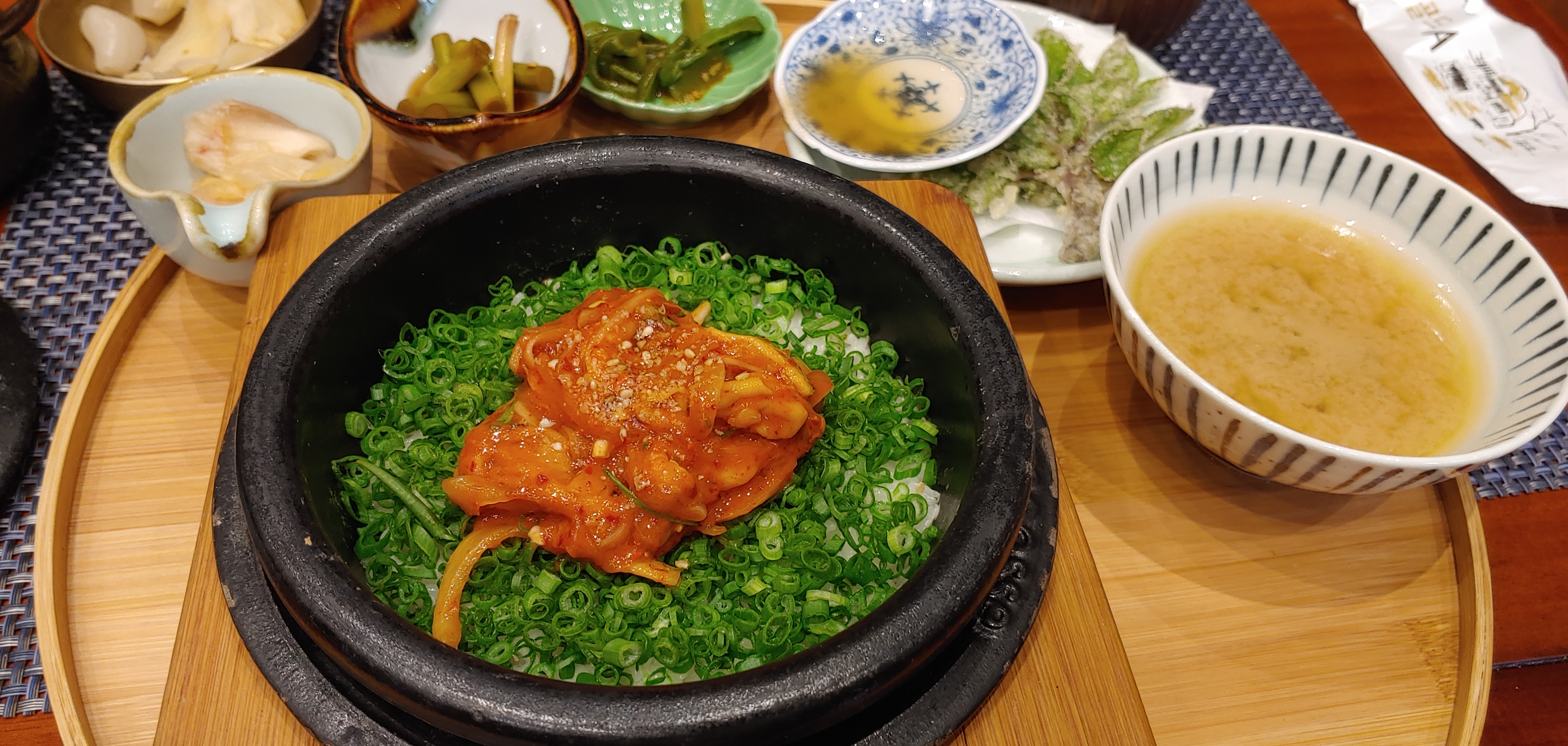 이번에도 고등어 솥밥을 먹으려는 찰라에 종업원이 오늘 멍게가 신선하고 좋다고 해서 추천 메뉴로 갔다.
