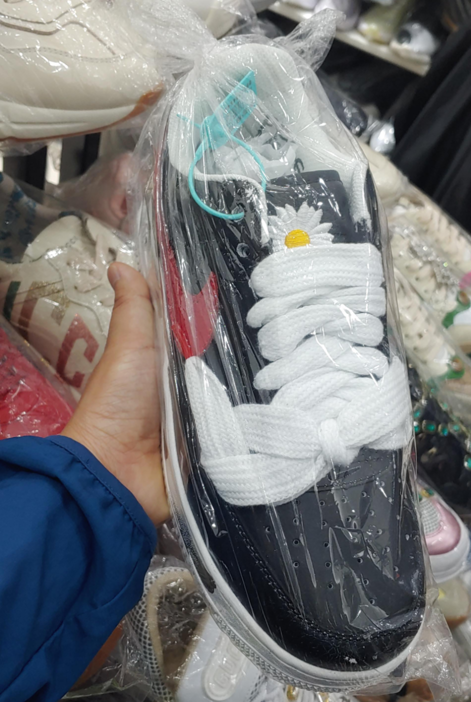 과일을 그렇게 먹고 채식 뷔페를 즐기고 호암끼엔 호수 주변을 돌기로 했다. 가는 길에?? 중간에 짝퉁시장이 있었다. 한국에서 한 때 GD 신발로 엄청 비싸게 나돌던 신발도 그냥 지천에 깔려있다.