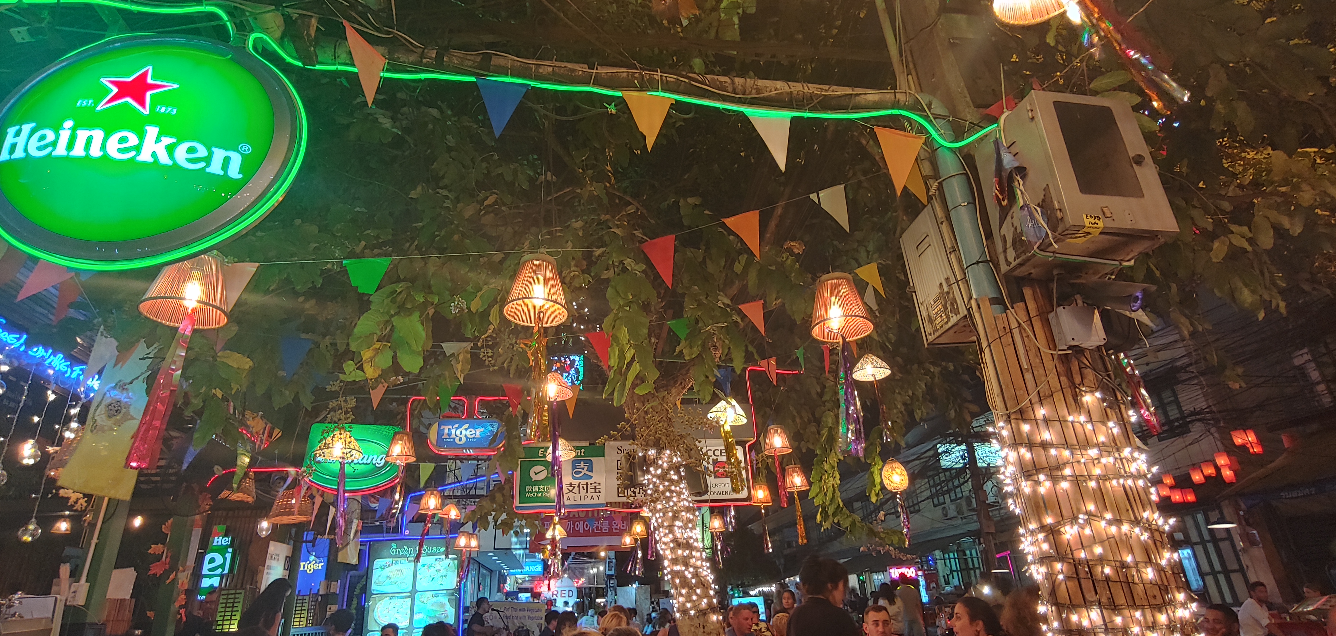 공항 한편에 택시를 안전하게 탈 수 있게끔 이렇게 마련해 주었다. 가격도 인터넷에서 본 거의 그대로였다. 첫날 우리가 보낼 곳은 카오산 로드 근처로 잡았다. 그리고 짐을 풀자마자 카오산 로드에 맥주를 마시러 떠났다.