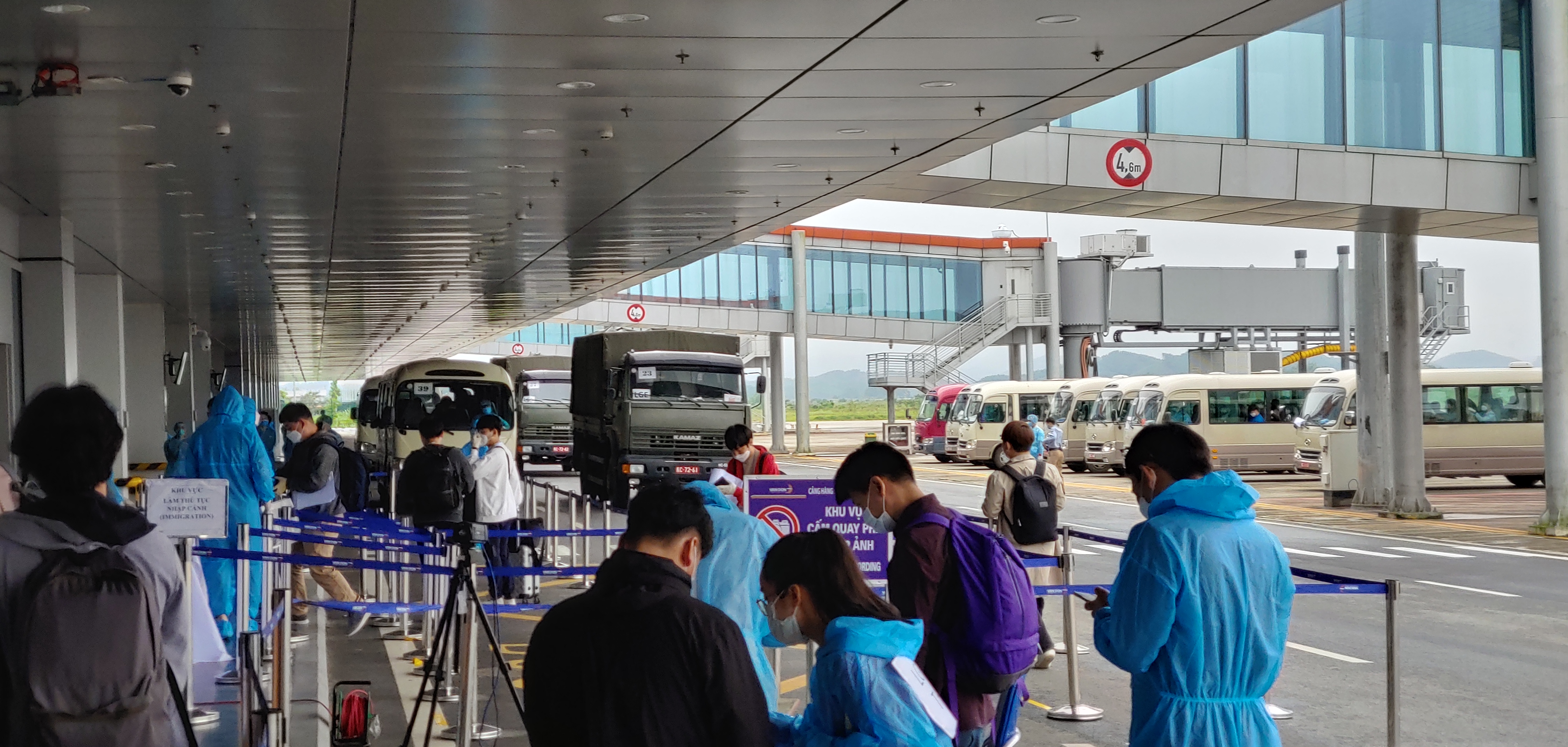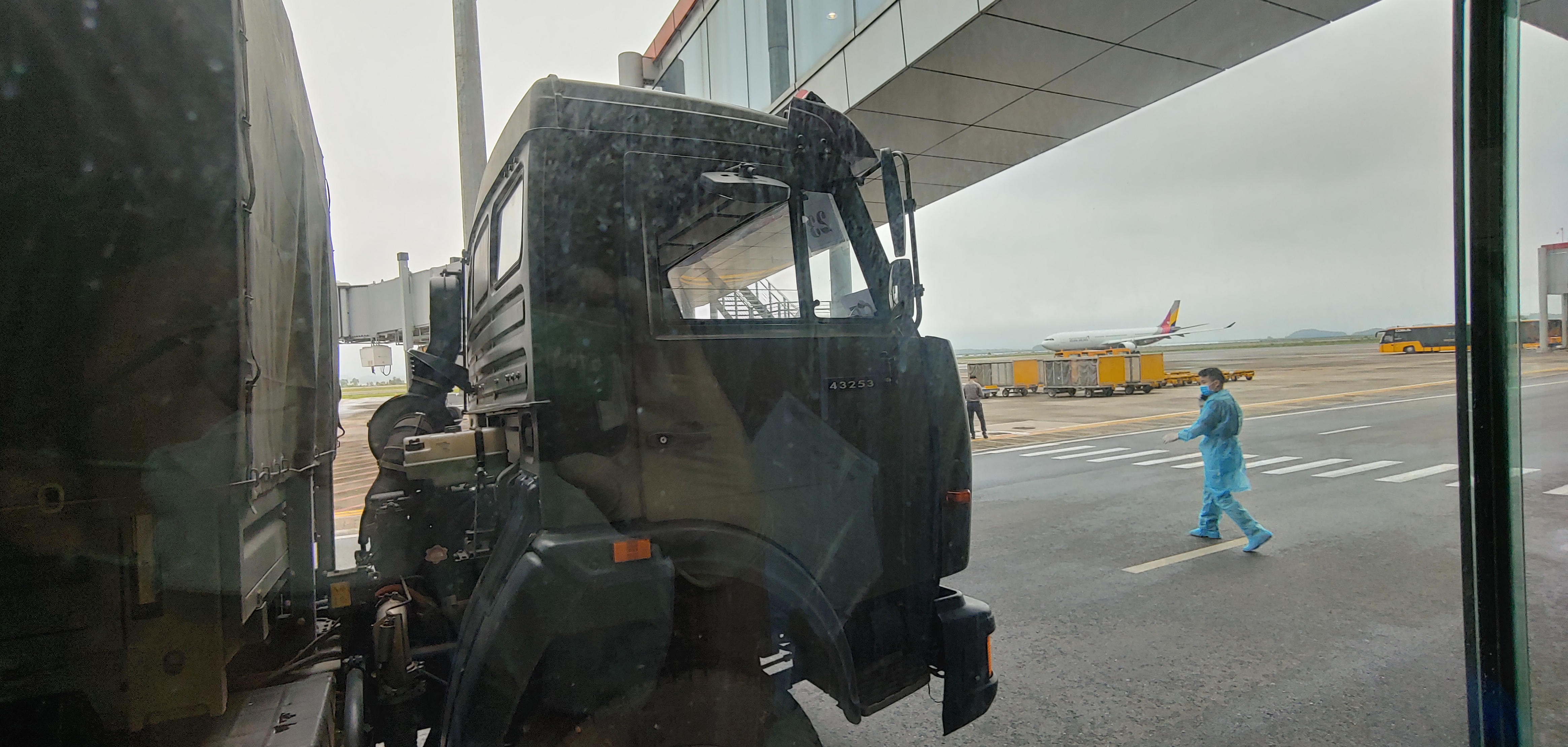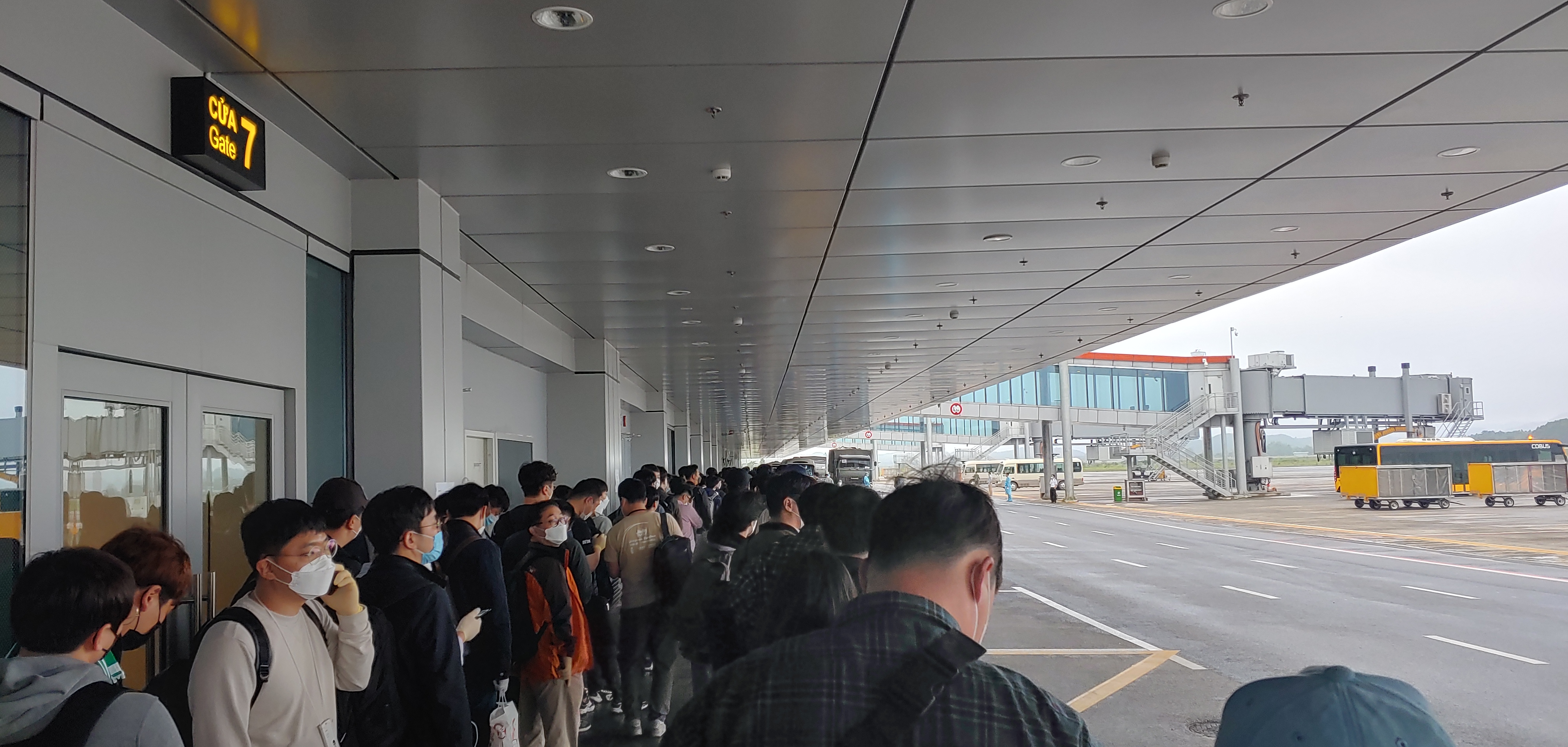 특이하게 전세기를 타고 가서 그런지 시골의? 하롱베이 근처에 있는 작은 공항으로 갔다. 아마도 하노이 같은 국제 공항보다는 안전하고 격리시키기 좋은 시골로 몰아 넣은 것 같다. 좋은 선택 같다.