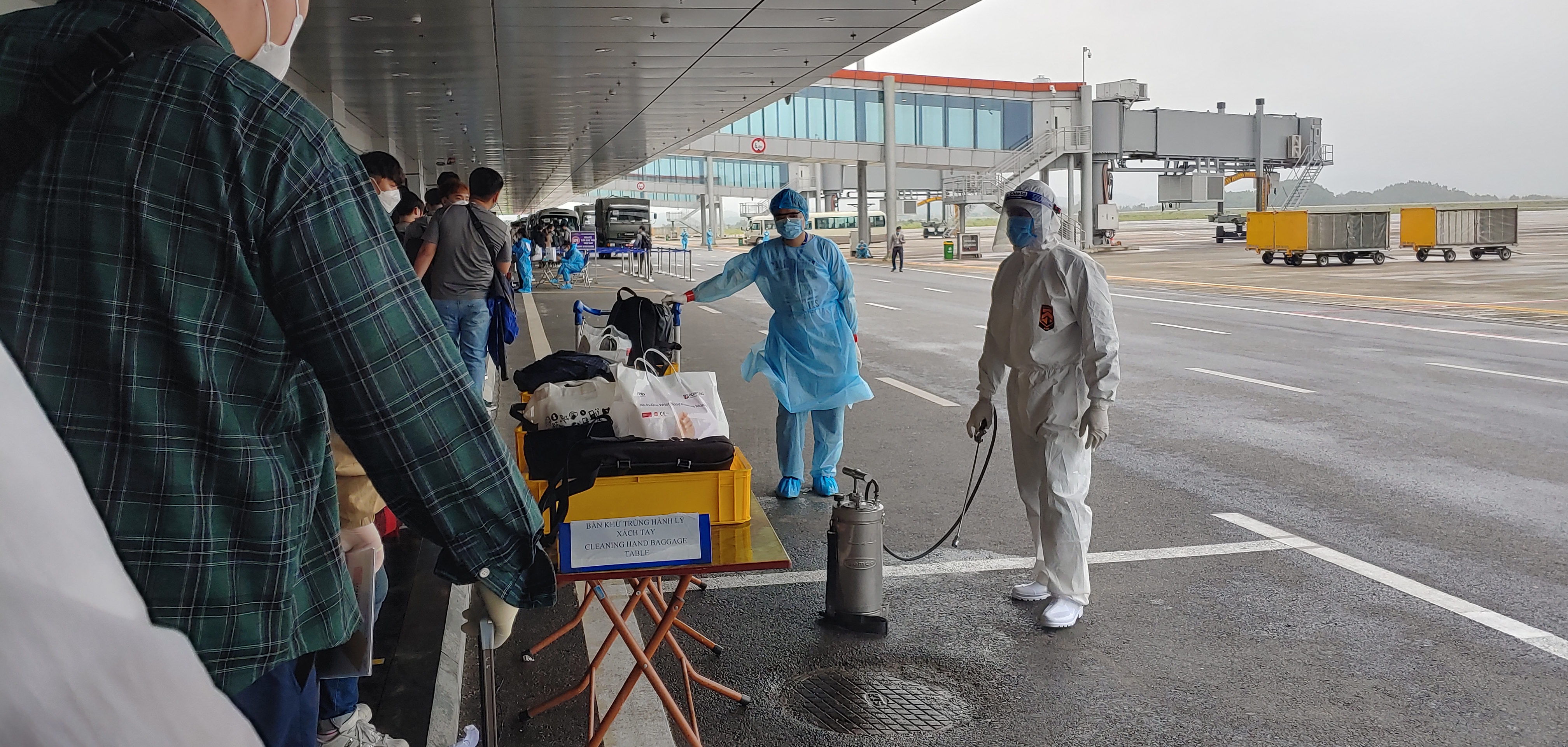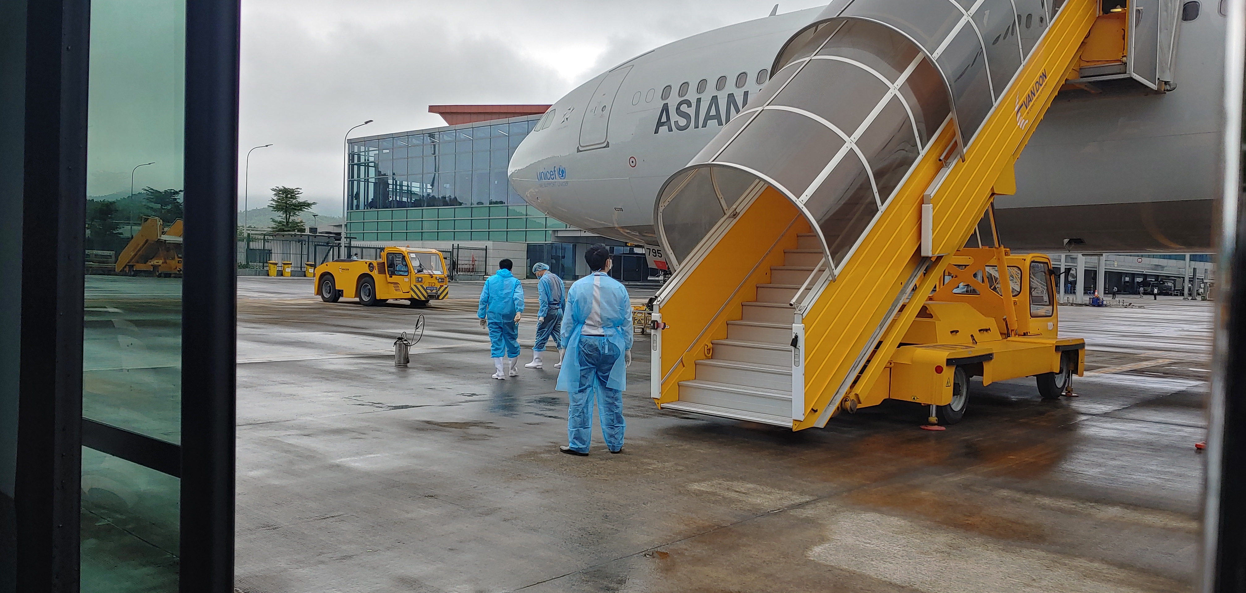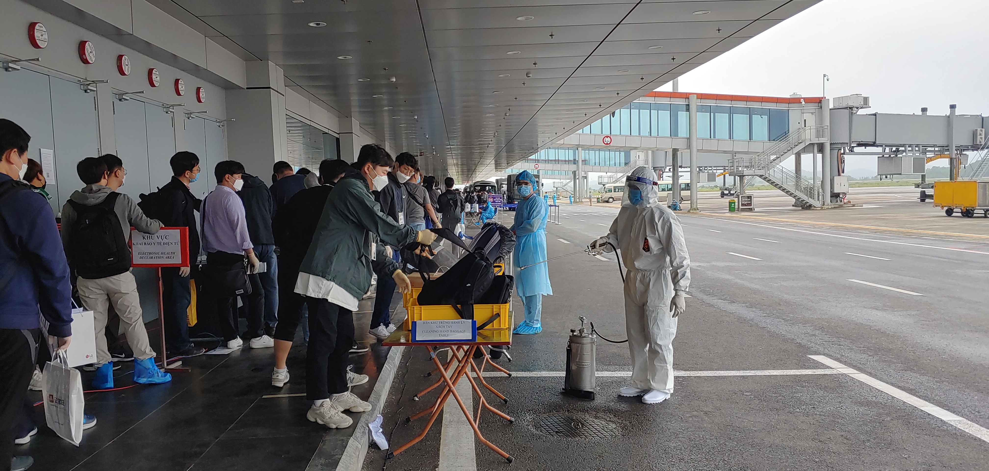 특이하게 전세기를 타고 가서 그런지 시골의? 하롱베이 근처에 있는 작은 공항으로 갔다. 아마도 하노이 같은 국제 공항보다는 안전하고 격리시키기 좋은 시골로 몰아 넣은 것 같다. 좋은 선택 같다.