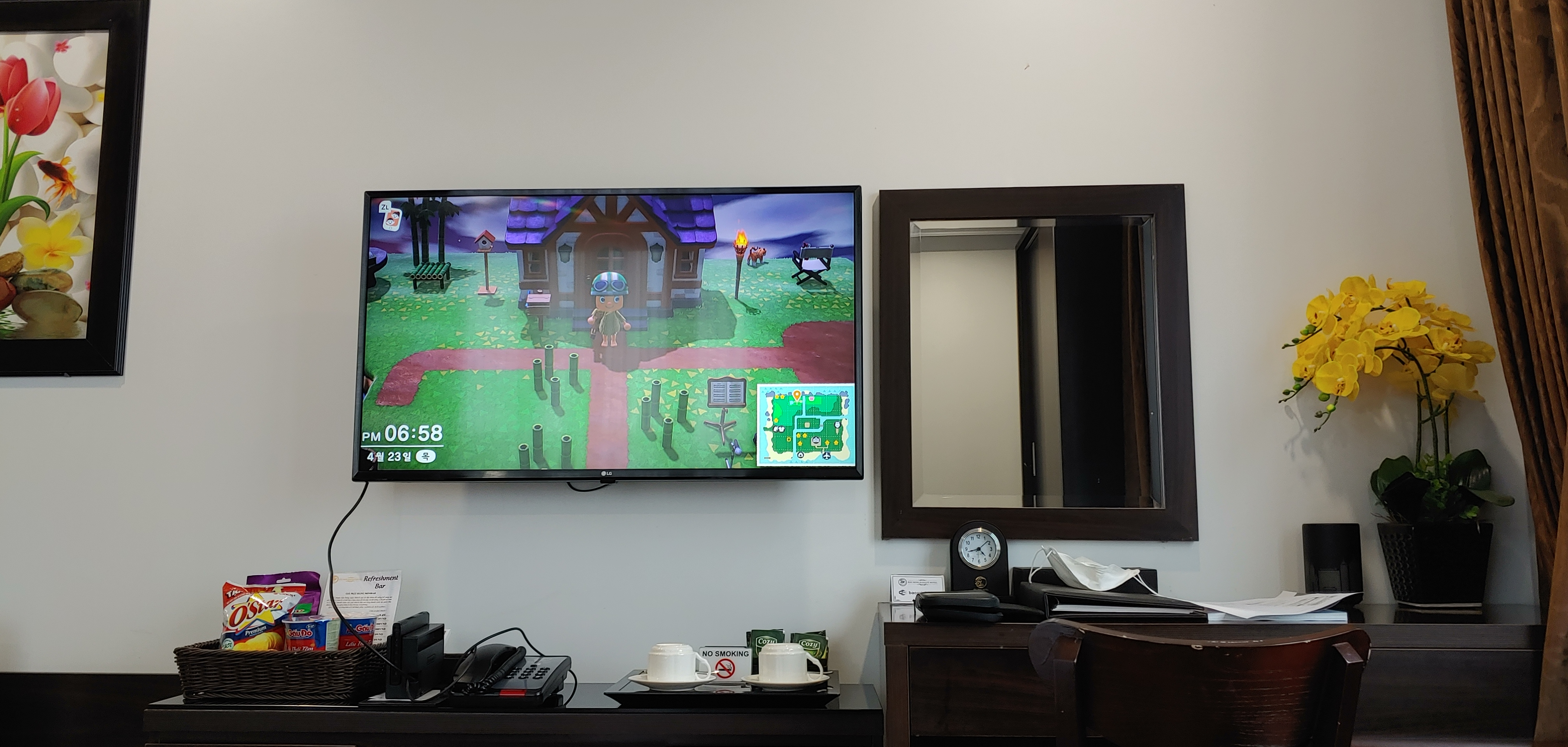 격리를 준비하기 위해 닌텐도를 가져왔었다. 다행히 TV도 좋고 게임하기에도 충분한 크기였다. 이 기회에 동숲을 잘 꾸며야겠다 ㅎㅎㅎㅎㅎ