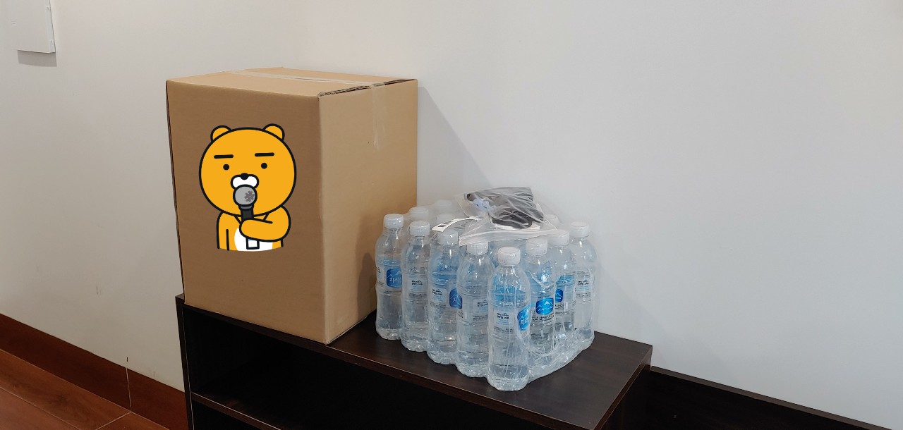 오 엄청 궁금하게 엄청나게 큰 박스에 넣어주었다. 기대 된다. 근데 저 물의 양은 엄청나게 부족해 보인다. 개인적으로는 5일도 안되서 모자랄 것 같았다.