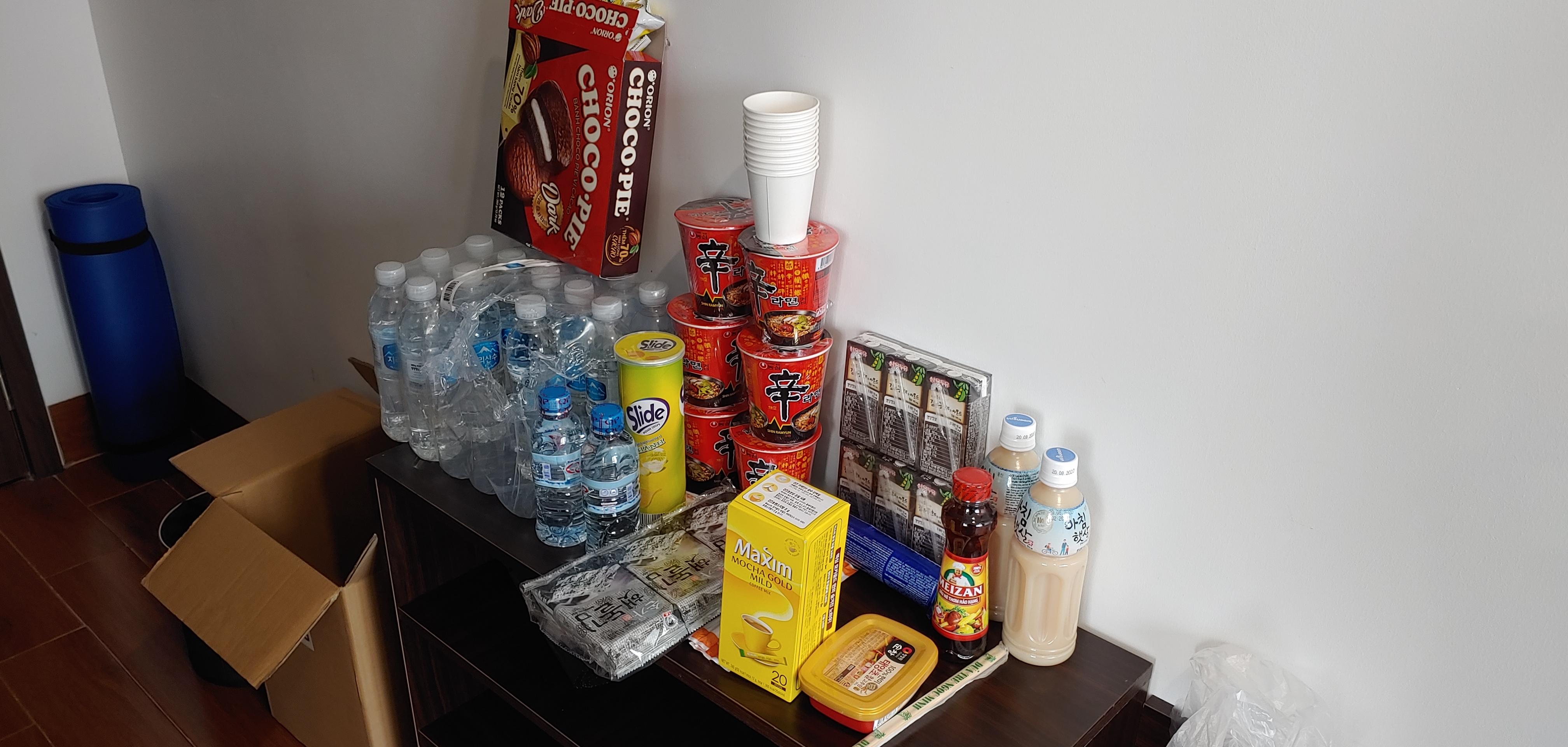 오늘은 격리지를 오기 위해 새벽 4시반부터 일어나서 12시간을 고생해서 도착했기 때문에 삐뚤어지고 싶었다. 맥주도 먹고 라면에 콜라 치킨 정말 최악의 식단이었지만 고생한 나에게 주는 선물이었다.