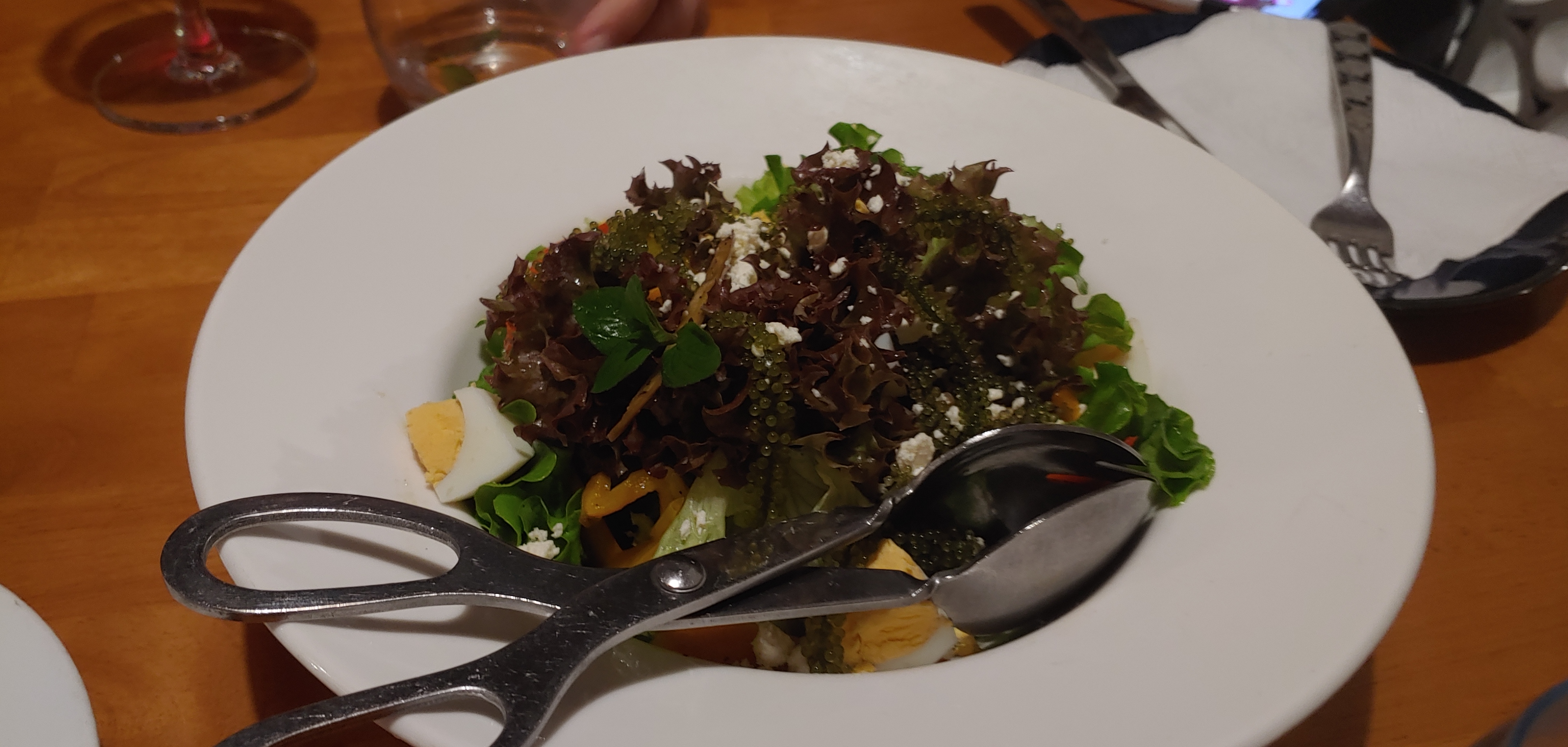 그냥 상추와 양상추가 나오는데 잘라주질 않아서 엄청 거슬렸다. 하지만 야간 시큼한 드레싱과 함께 나와 입맛을 돋구는 것 같아 좋았다. 잘라주기만 하면 좋겠다
