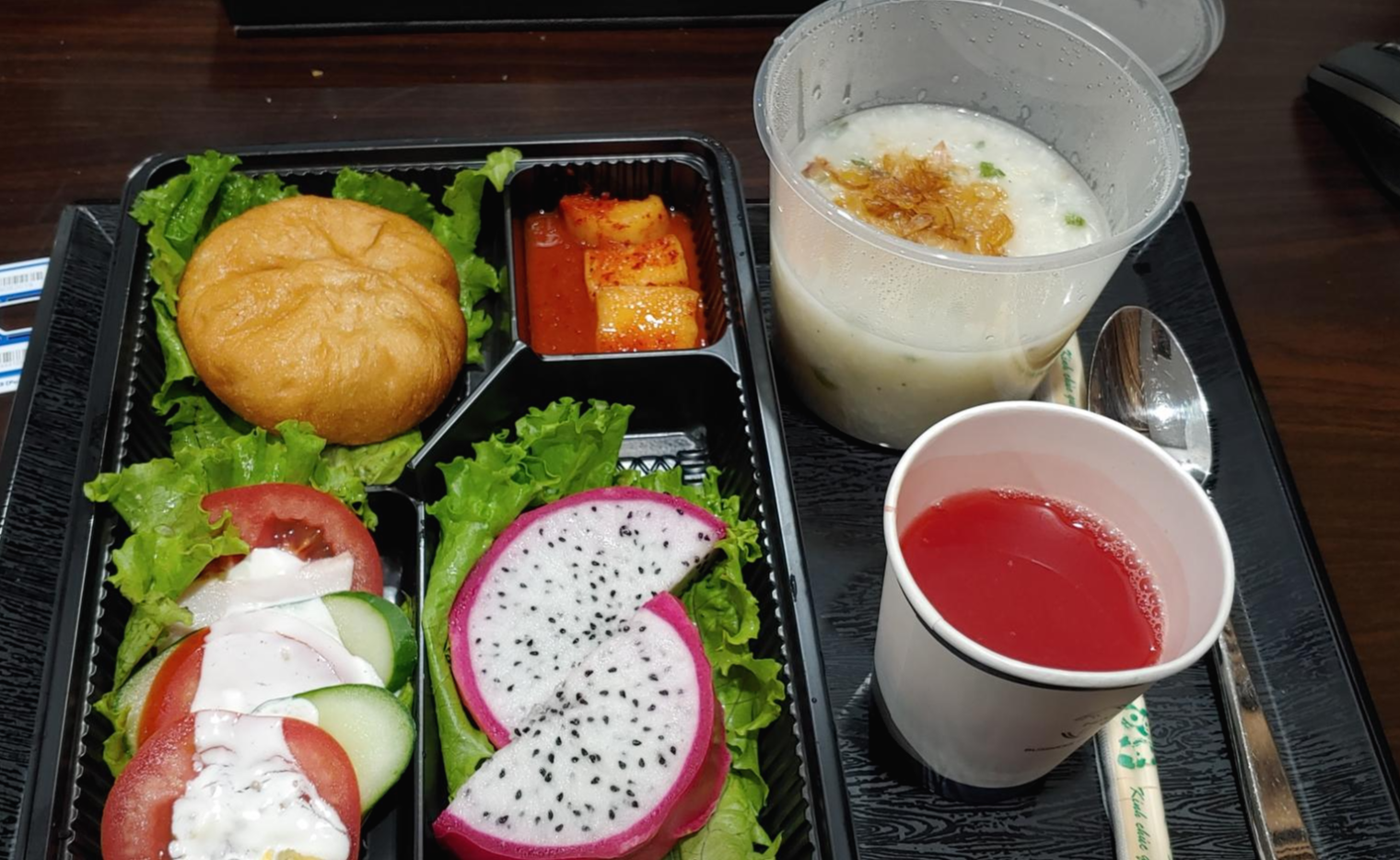 먹 먹어야 할지 모르겠다. 용과와 음료수만 먹고 밖에 내놨다. 밖에 식판을 내보낼 때 다른 사람들이 어느정도 먹는지 보는데 주변 사람들도 먹지는 않는 것 같다. ㅎㅎㅎㅎ 다들 비슷하군...