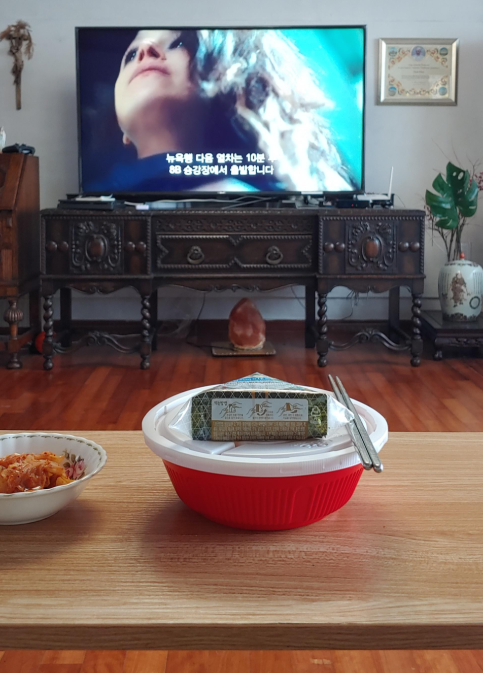 너무 먹고 싶은 것이 있어 부모님에게 부탁해뒀다. 왕뚜껑과 삼각김밥~! 역시 한국이 최고다~!
