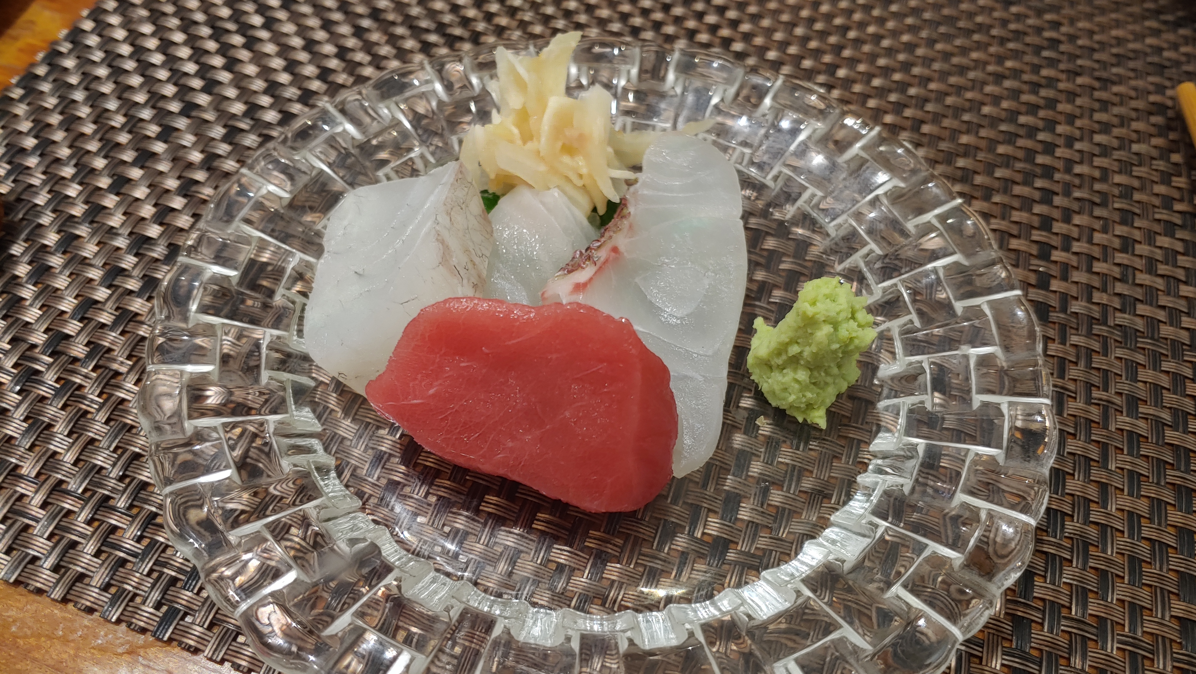 갑작스러운 스시로 인해 혀가 놀라는 것을 방지하려고 사시미가 미리 나온다.