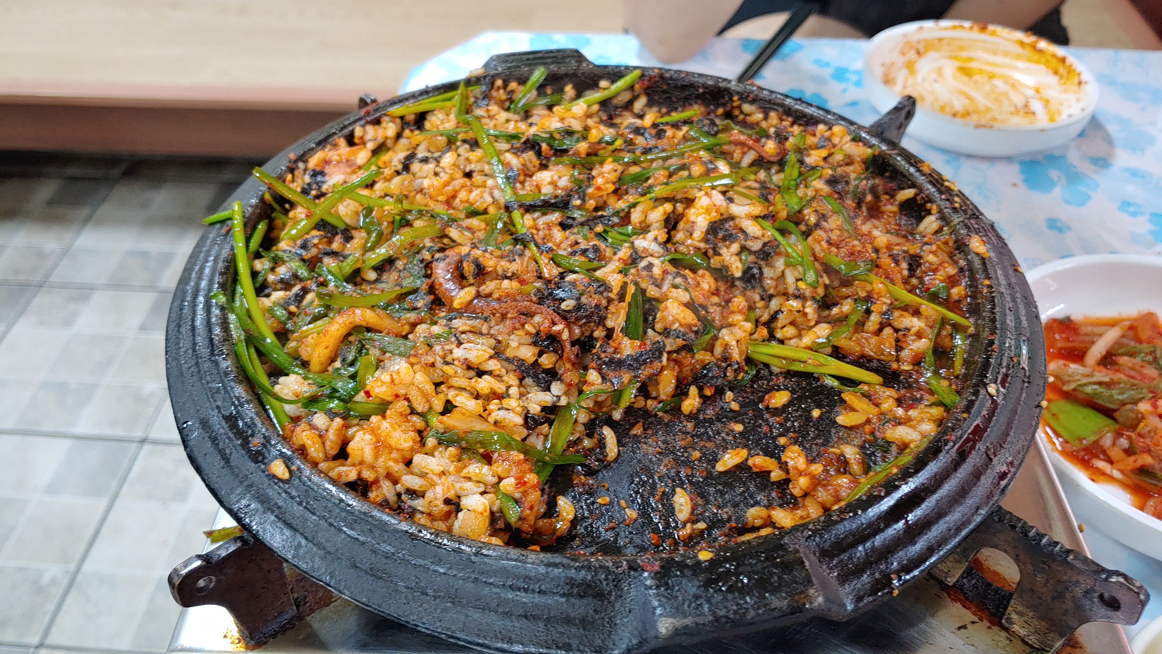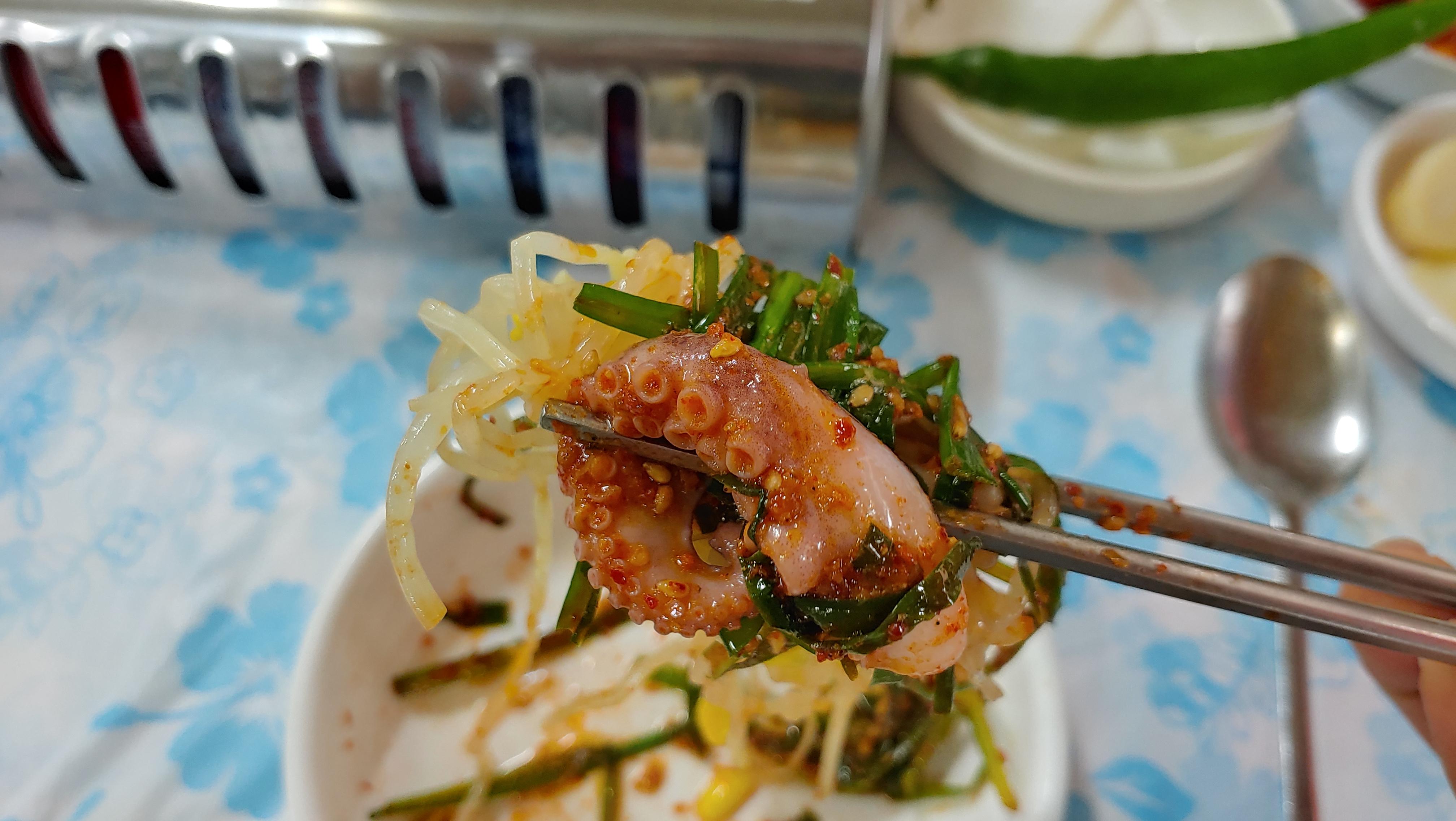 옆에 어항? 이 있어서 쭈꾸리를 처음 살아있는 것을 보았는데, 쭈꾸미가 이렇게 큰 생물이어서 놀랐다. 여튼 쫄깃쫄깃하고 양념이 잘 베어서 맛있다.