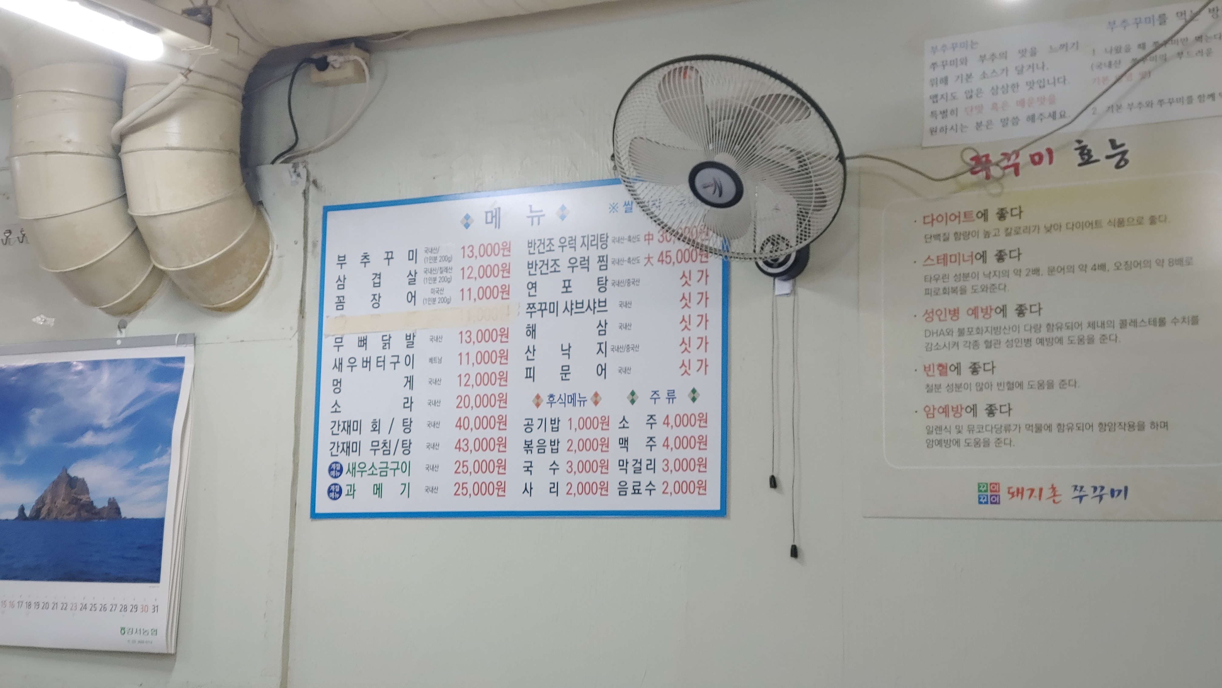 가격도 엄청나게 비싸지 않아 보였다. 게다가 각종 해산물이 있는 것을 보면 술 마시기에도 딱이었다. 분위기도 동네 사람들이 소주 한 잔 하러 오면 좋아 보였다. 하지만 우리는 차를 가져왔고 이제 술을 줄이기로 했으니....