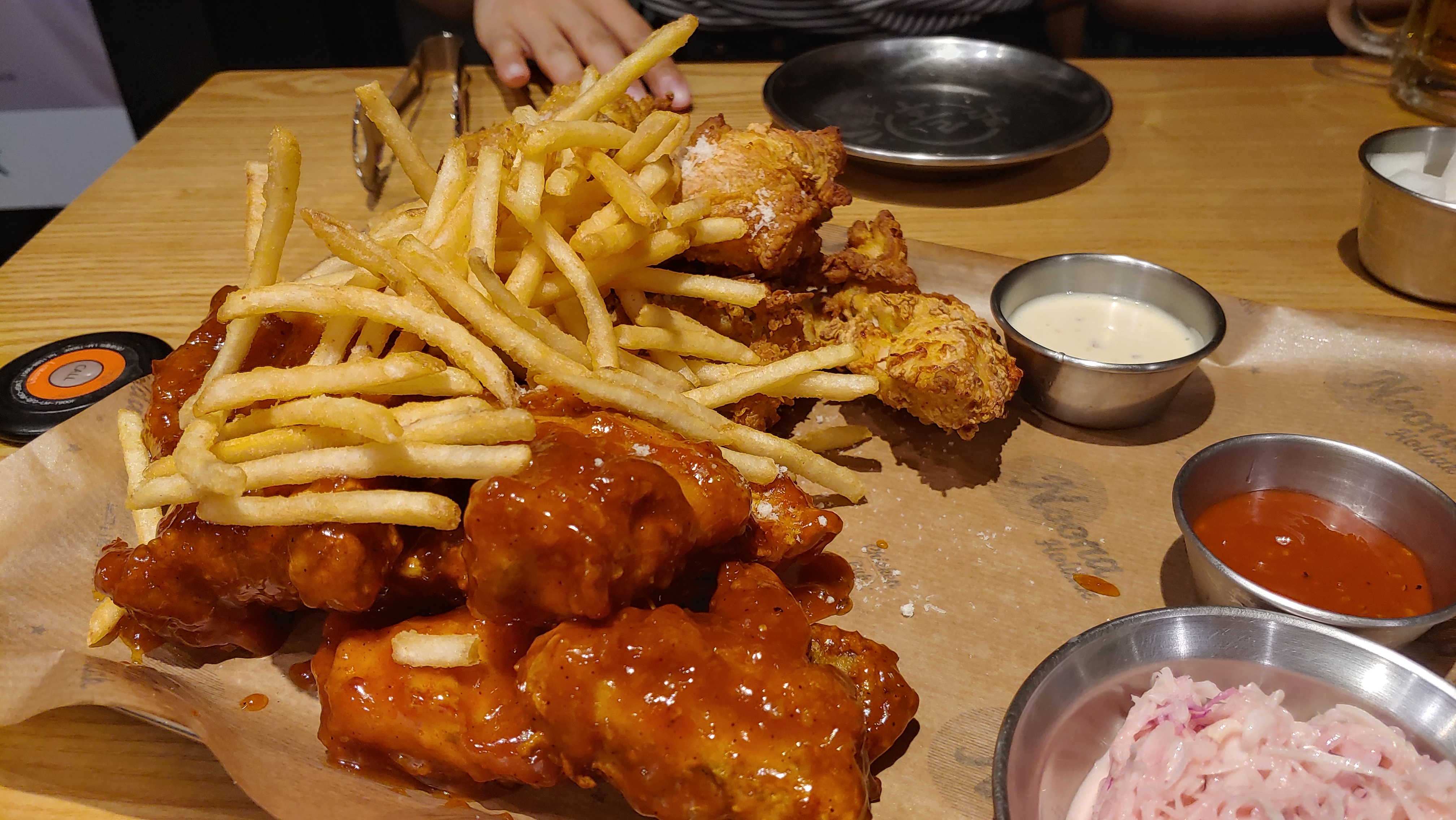 메뉴판에는 치킨이 한종류? 로 보이는데 천원을 추가로 내면 양념 반을 넣을 수 있으니 참고 하기를.....