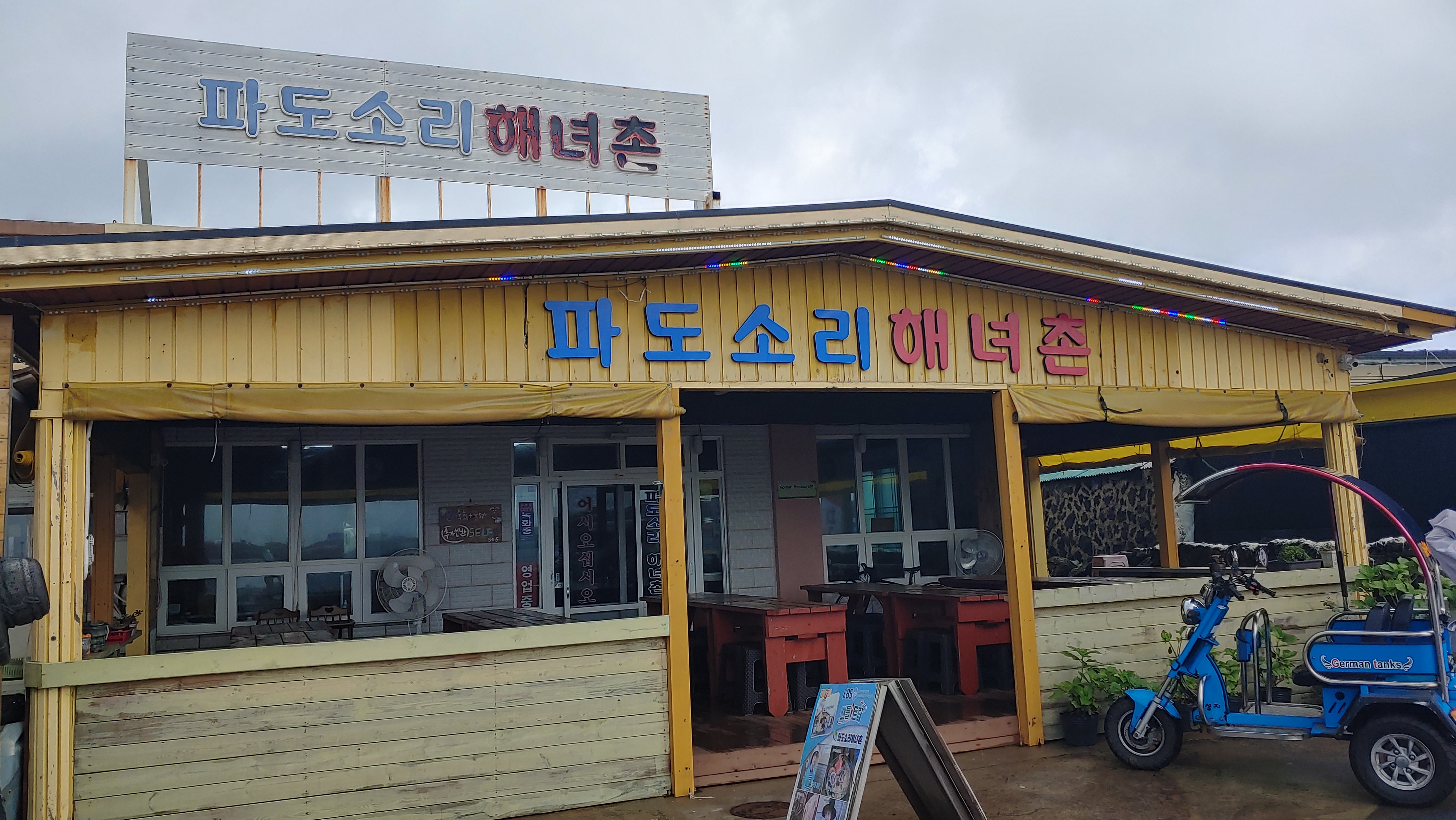 우도에 와서도 우리는 이왕이면 맛있게 먹고 나가야 했다. 비까지 많이 왔는데 우리는 찾고 찾았다. 얼마 전 여자 친구가 친구들끼리 와서 엄청 맛있게 먹고 갔다고 한 보말 칼국수를 먹으러 엄청난 비바람을 뚫고 찾아갔다. 사실 길이 거의 외길이기 때문에 그냥 쭉 가다보면 나온다. 하지만 이 정도로 비가 오면 아무 가게에 가서 비를 피해도 되는데 우리는 끝까지 잘 참았다.