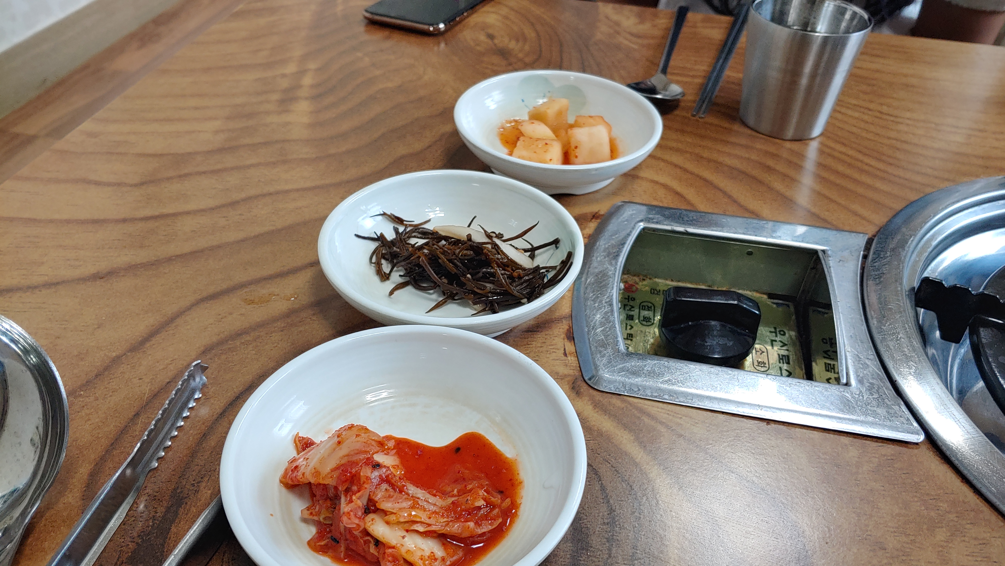 역시 제주도에 오니깐 톳이 반찬으로 나온다. 너무 좋다. 부엌 쪽에 반찬을 더 먹을 수 있게 되어있으니 마음대로 먹어도 된다. 오예~!