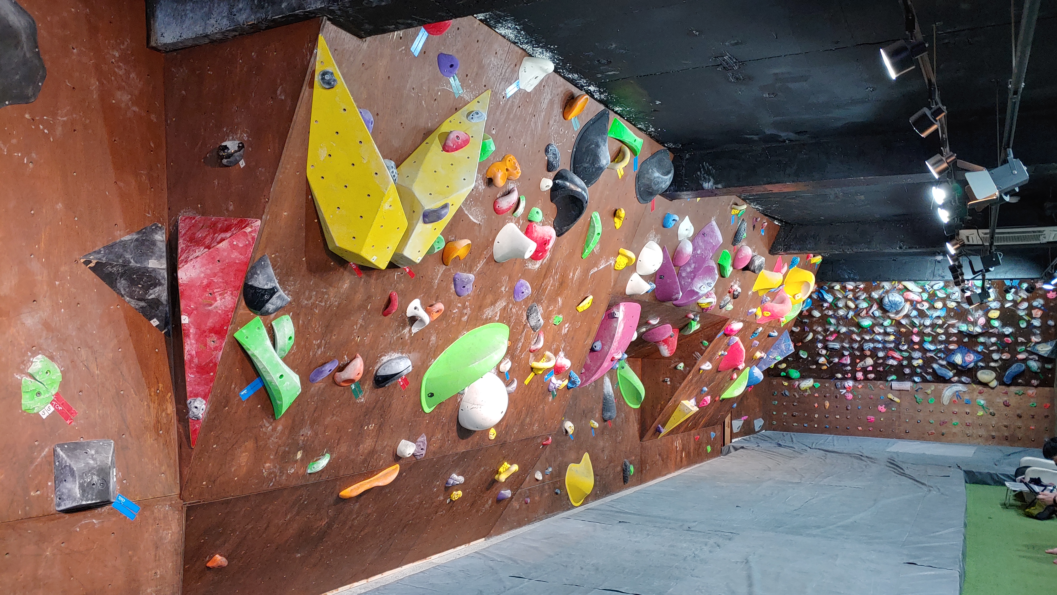 개인적으로 좋아하는 나무색으로 되어 있어서 이뻐보였다. 보이는 벽이 하나 있고 뒤쪽에 지구력벽이 있다. 놀러와서 지구력을 하지는 않으니 이 쪽에서만 거의 놀다갔다.